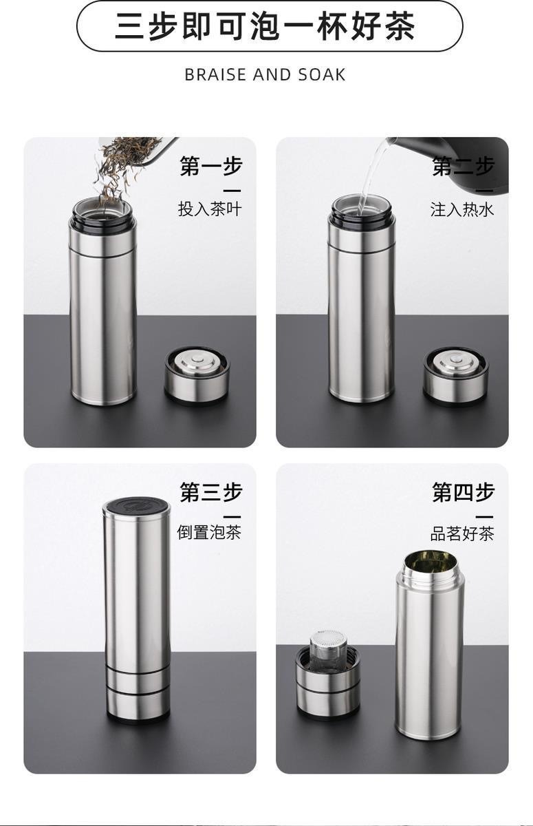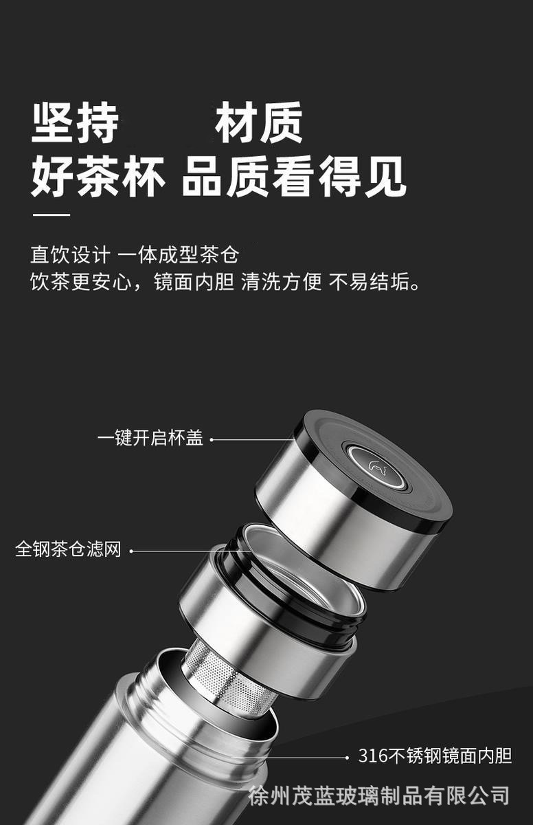 도매 스테인레스 스틸 보온병 컵 비즈니스 남성 원 버튼 오픈 뚜껑 고급 차 분리 버블 컵 빠른 오픈 카 컵