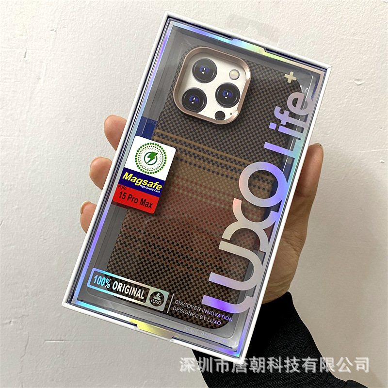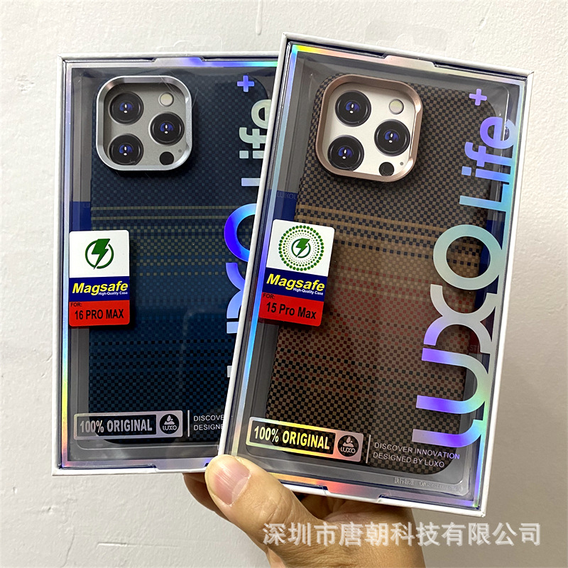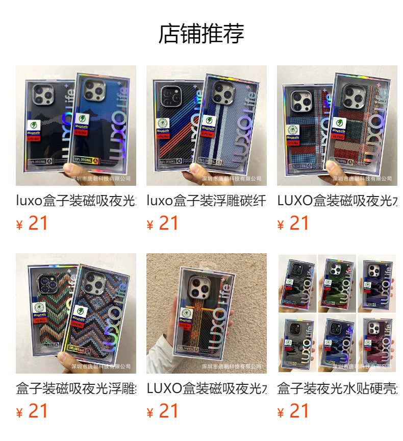 iPhone16E1514/13ProMax 양각 휴대폰 케이스에 적합한 박스형 LUXO 자기 발광 물 스티커 하드 케이스스토어 가기