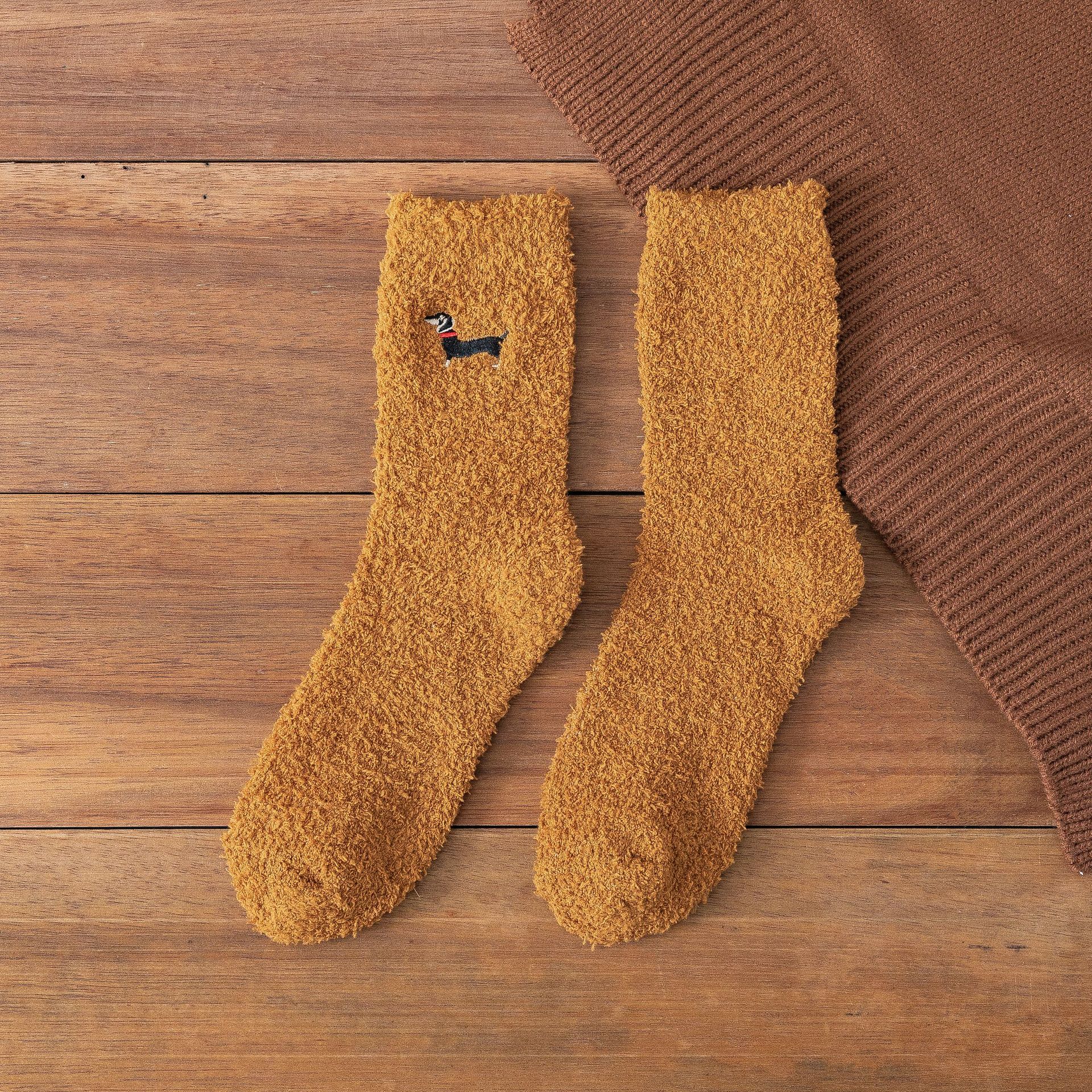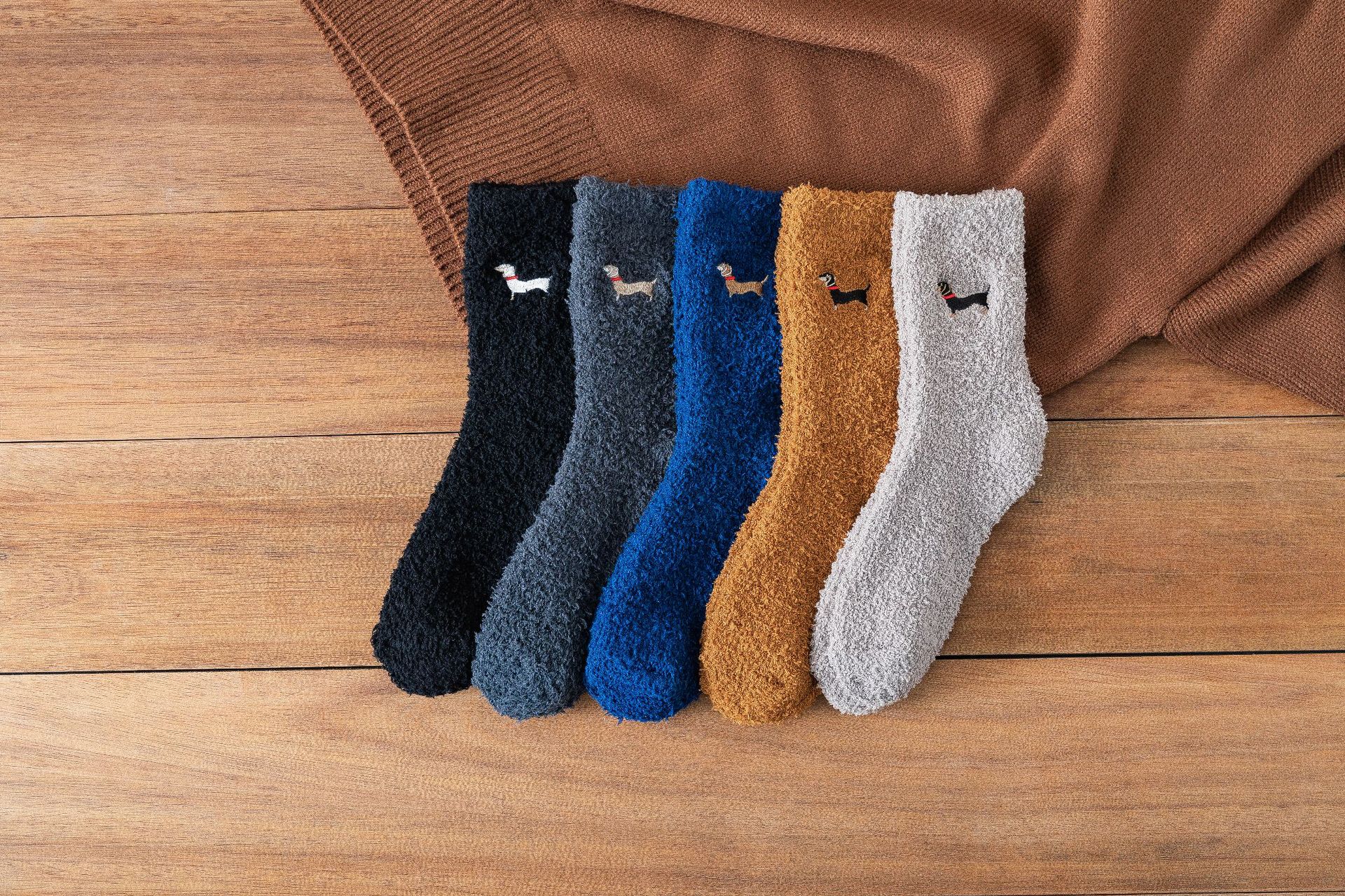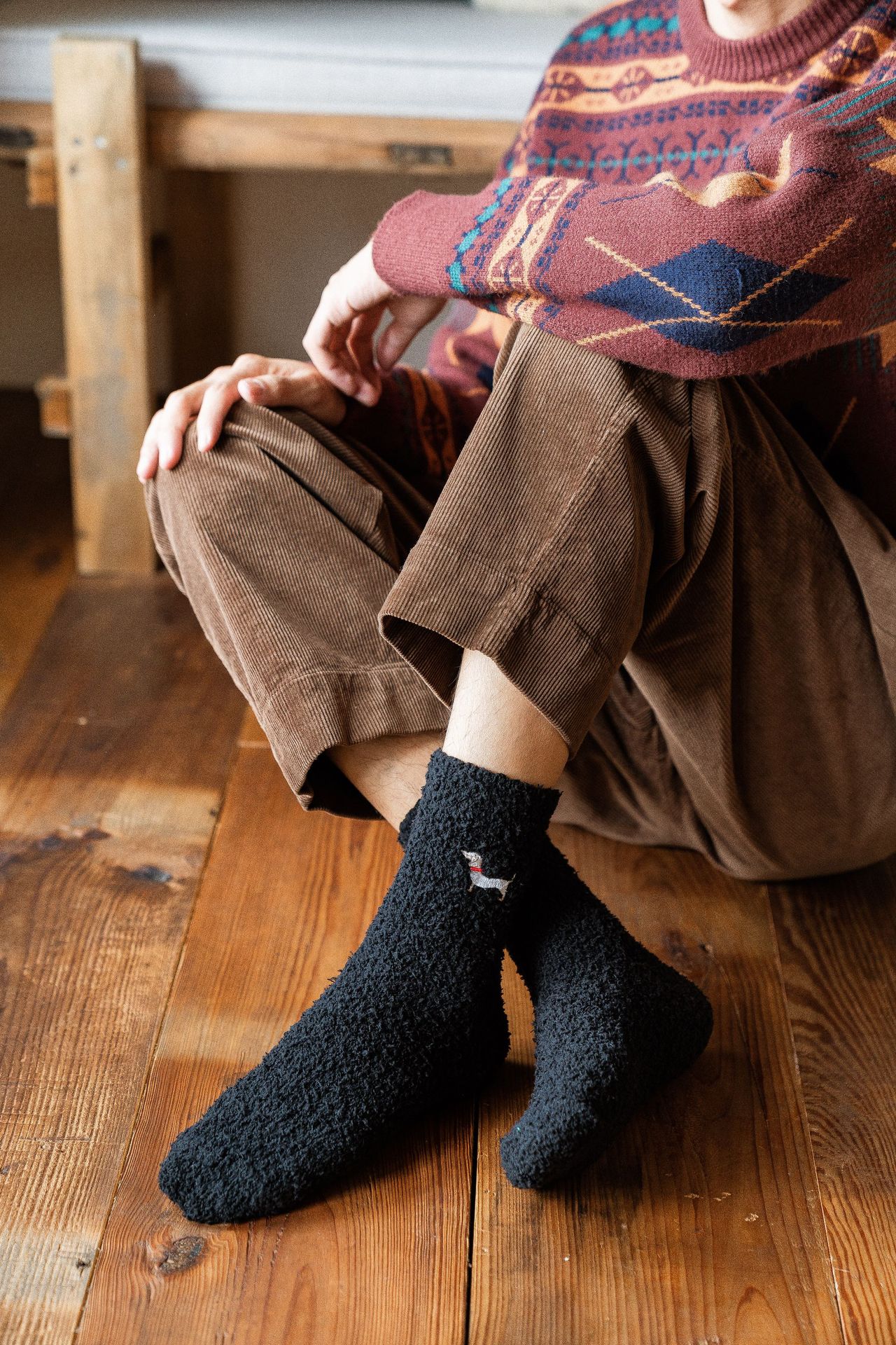 가을과 겨울 산호 벨벳 양말 남성 양말 두꺼운 기모 자수 강아지 따뜻한 수건 양말 홈 바닥 양말