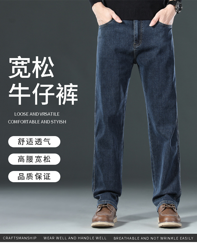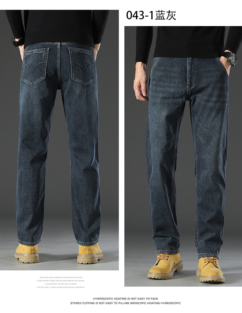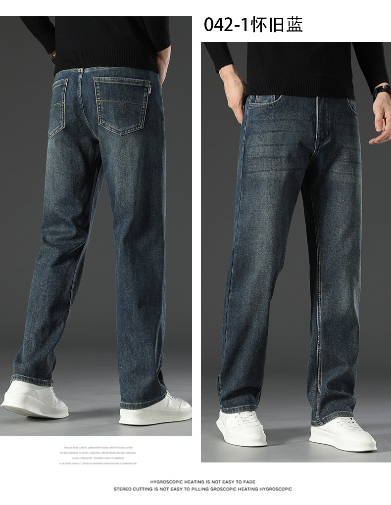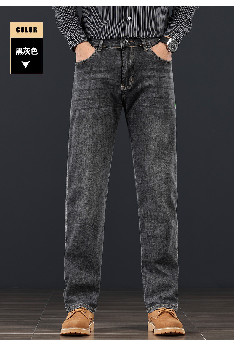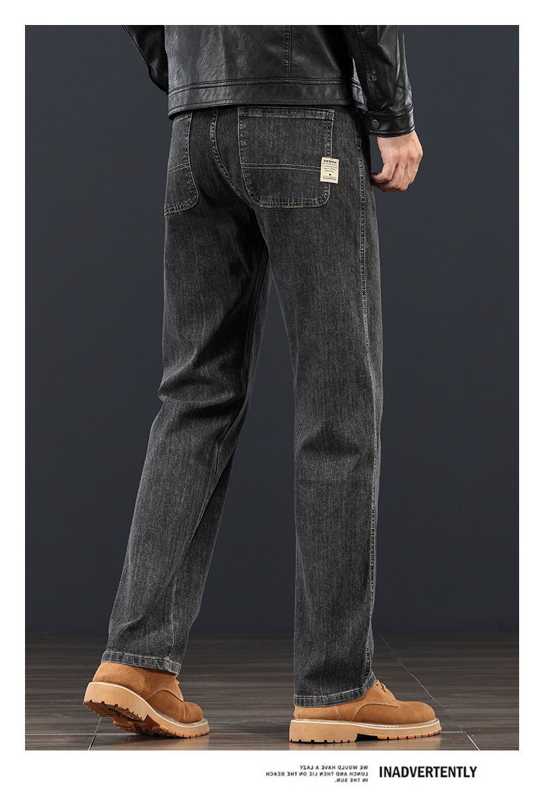 2025년 신상 고급 데님 팬츠 남성용 봄 가을용 대형 사이즈 루즈핏 스트레이트 팬츠 겨울 중년 남성용 플리스 안감 긴바지스토어 가기