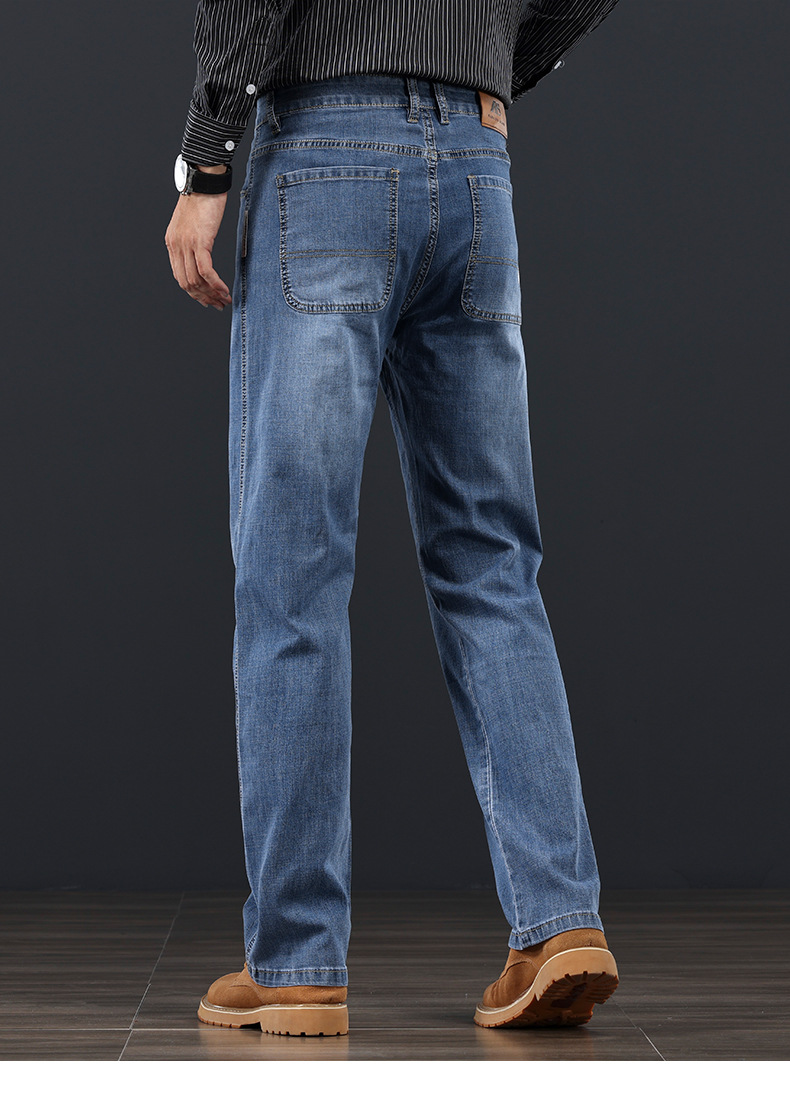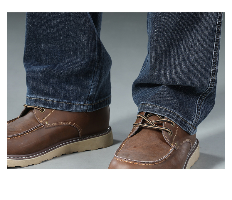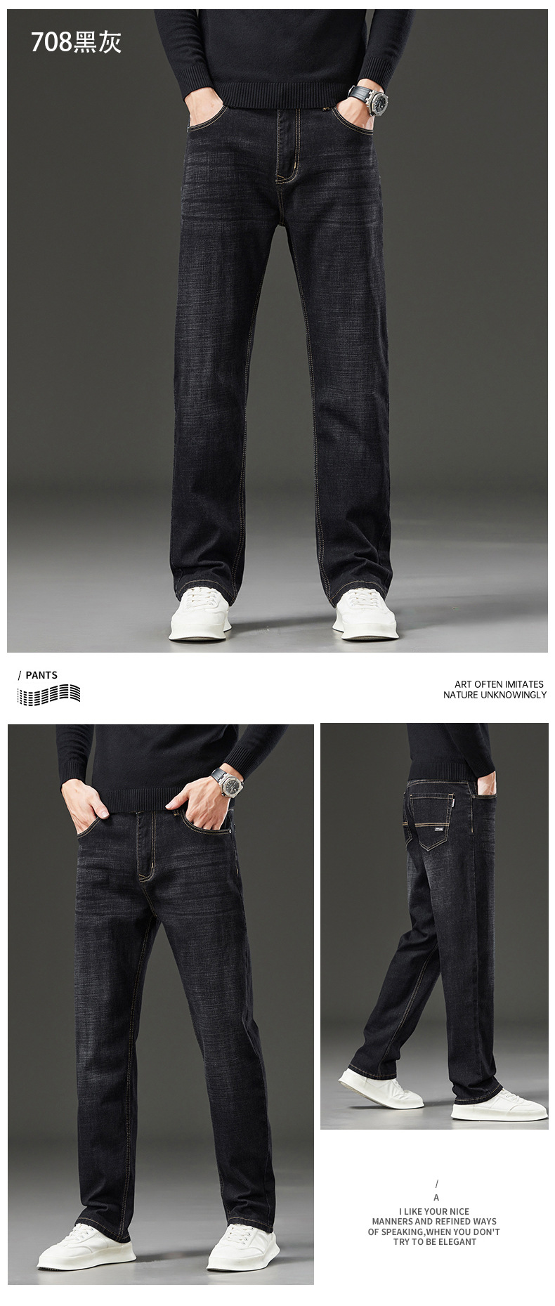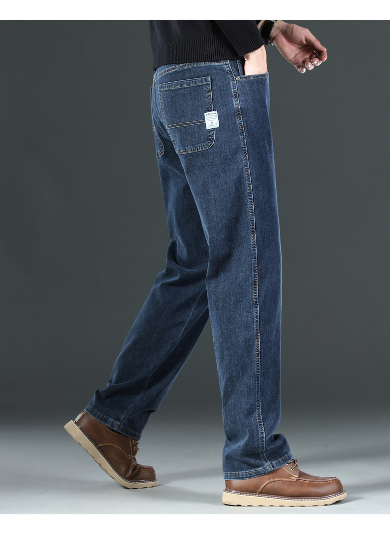 2025년 신상 고급 데님 팬츠 남성용 봄 가을용 대형 사이즈 루즈핏 스트레이트 팬츠 겨울 중년 남성용 플리스 안감 긴바지스토어 가기