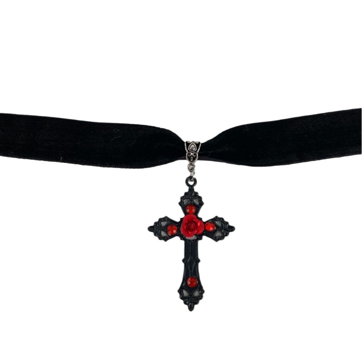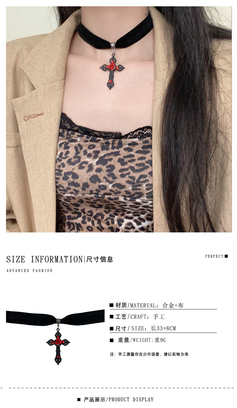 다크 스위트 쿨 에나멜 로즈 크로스 펜던트 목걸이 여성 고딕 하위 문화 쇄골 체인 맞춤형 목걸이스토어 가기