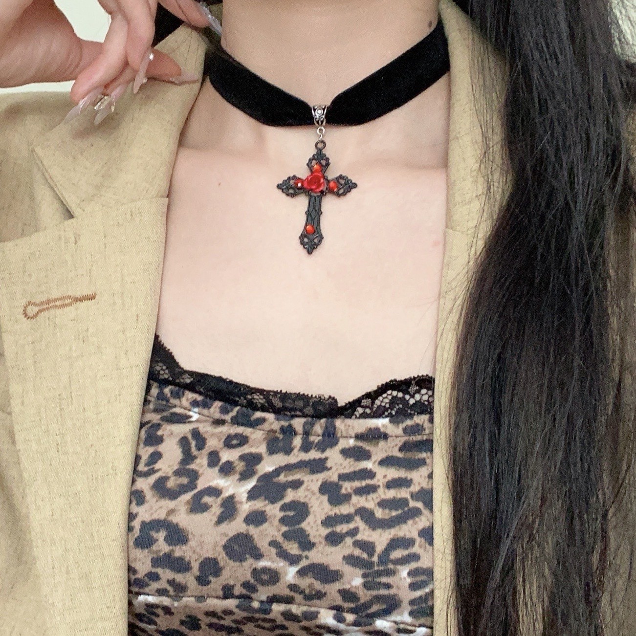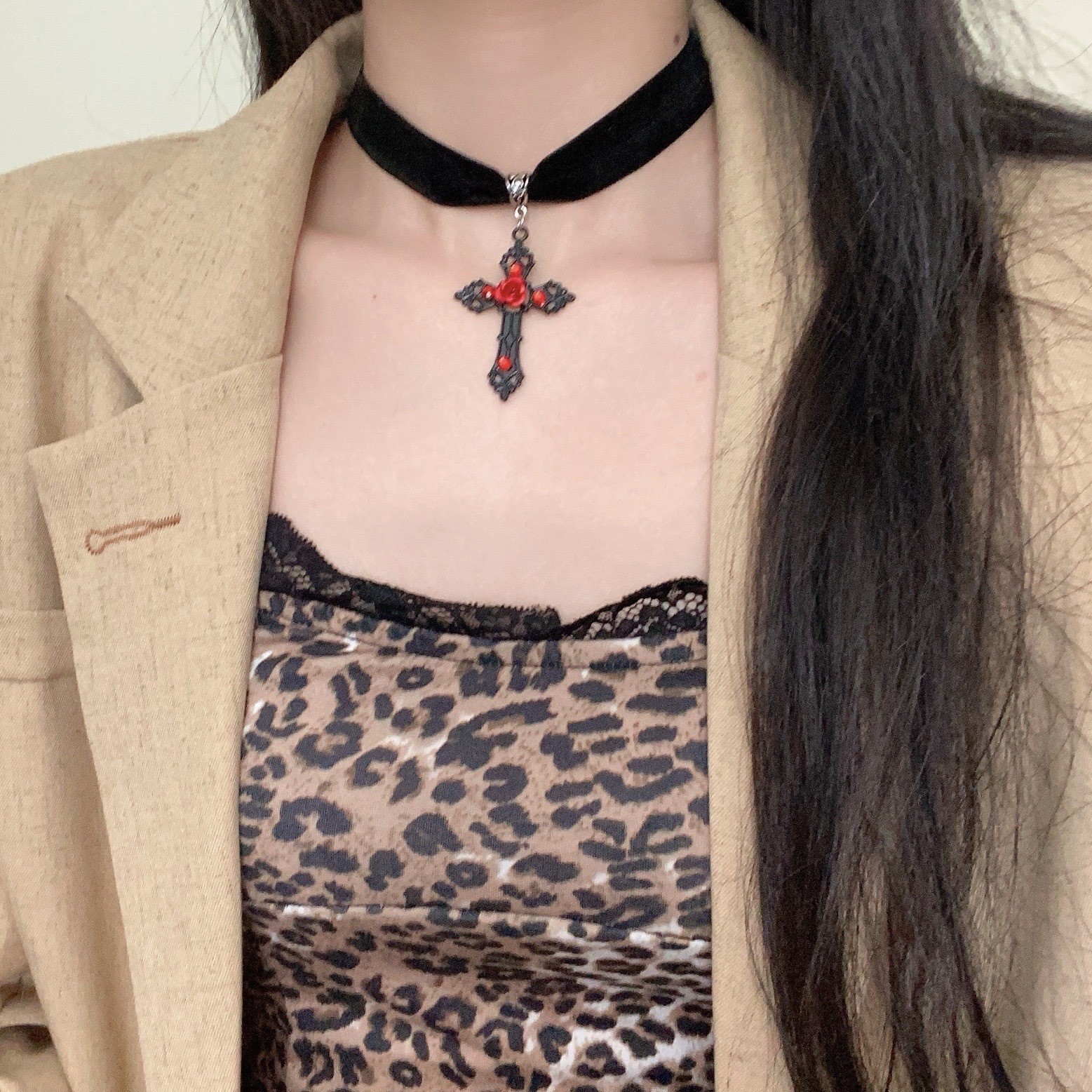 다크 스위트 쿨 에나멜 로즈 크로스 펜던트 목걸이 여성 고딕 하위 문화 쇄골 체인 맞춤형 목걸이