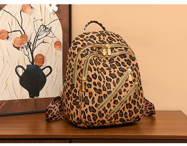 유럽과 미국의 국경 새로운 독특한 레오파드 무늬 여성 가방 틈새 캐주얼 올 매치 다기능 대용량 배낭