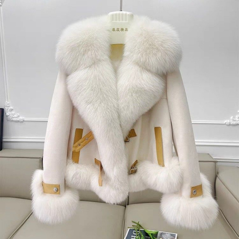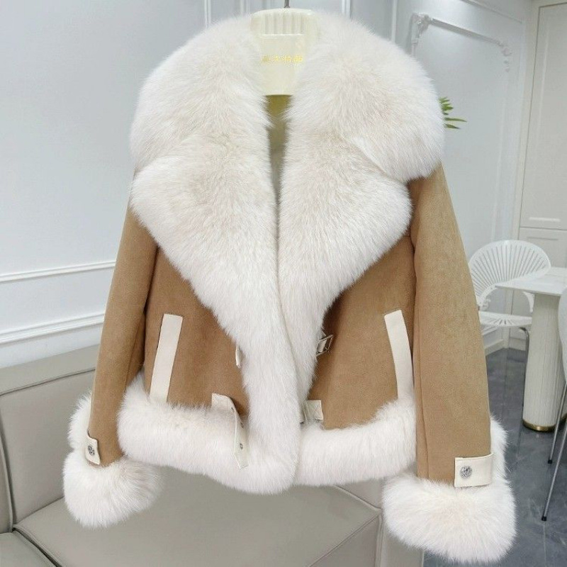 仿狐狸毛皮外套女短款2023新款海宁冬机车美拉德大衣羽绒服