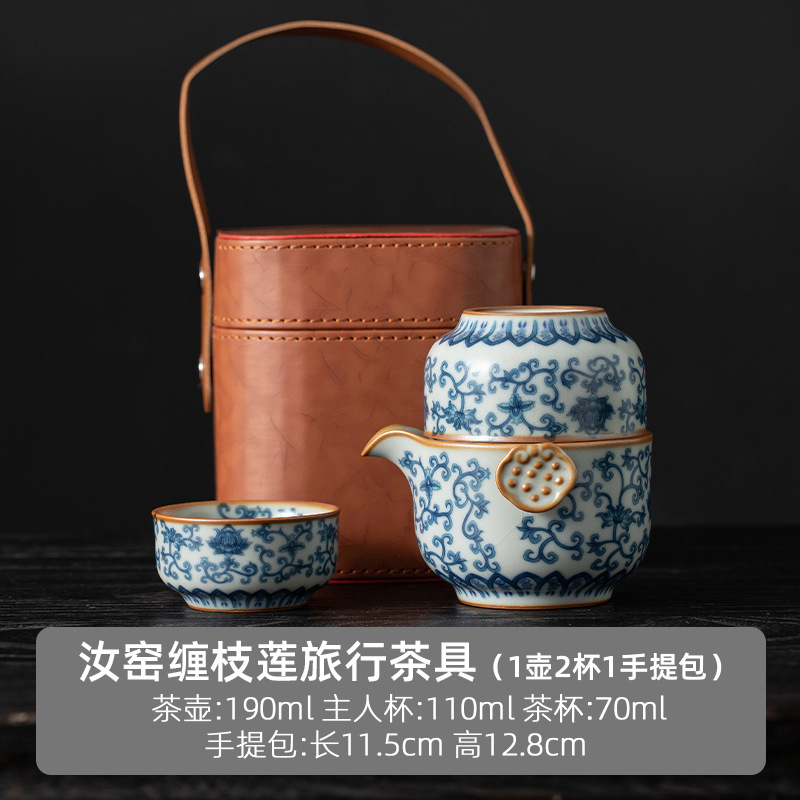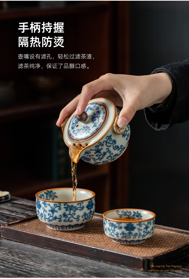 파란색과 흰색 Ruyao 휴대용 여행 차 세트 세트 휴대용 주전자 찻잔 1 인 특별 캠핑 익스프레스 컵