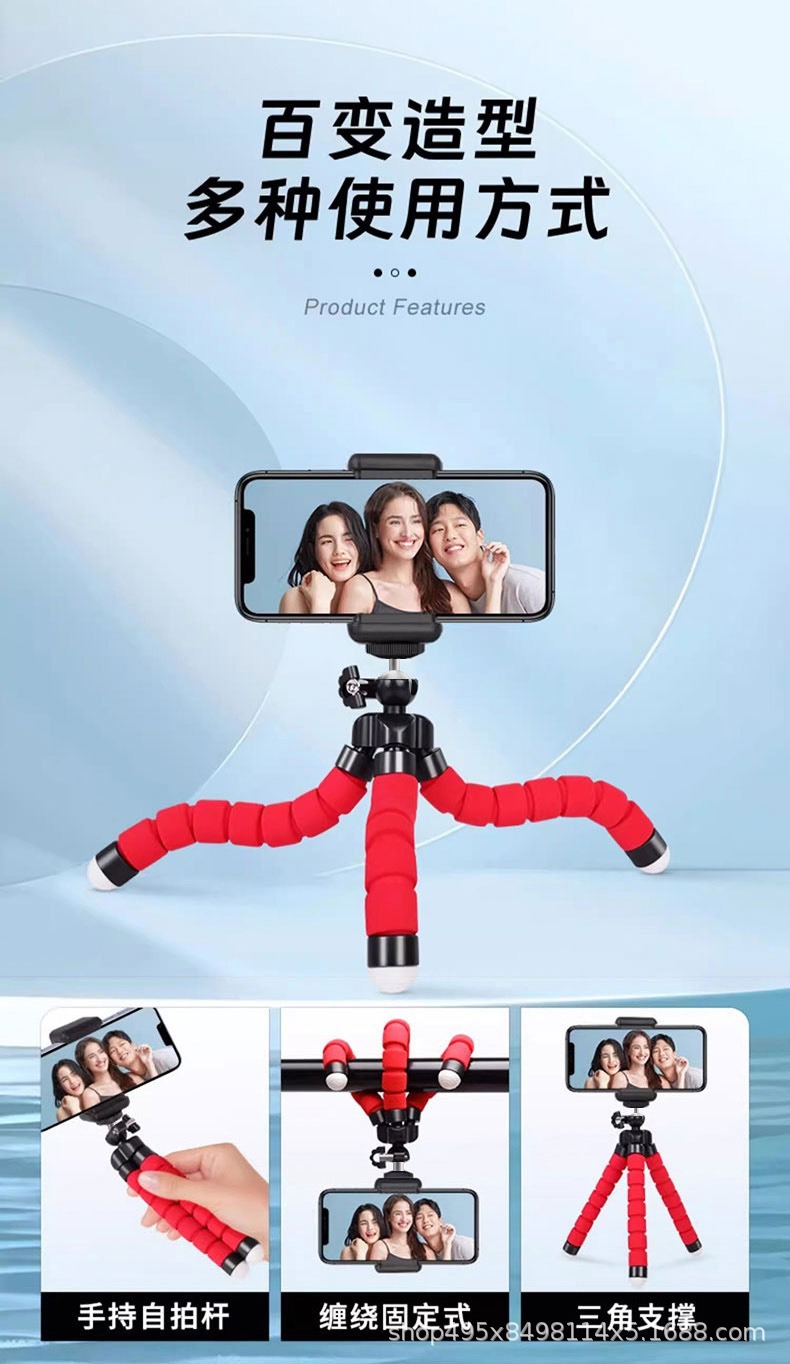 문어 모양 휴대폰 거치대, 휴대폰 삼각대, 다기능 셀카 도구, 라이브 방송 및 사진 촬영용 미니 스마트 거치대스토어 가기