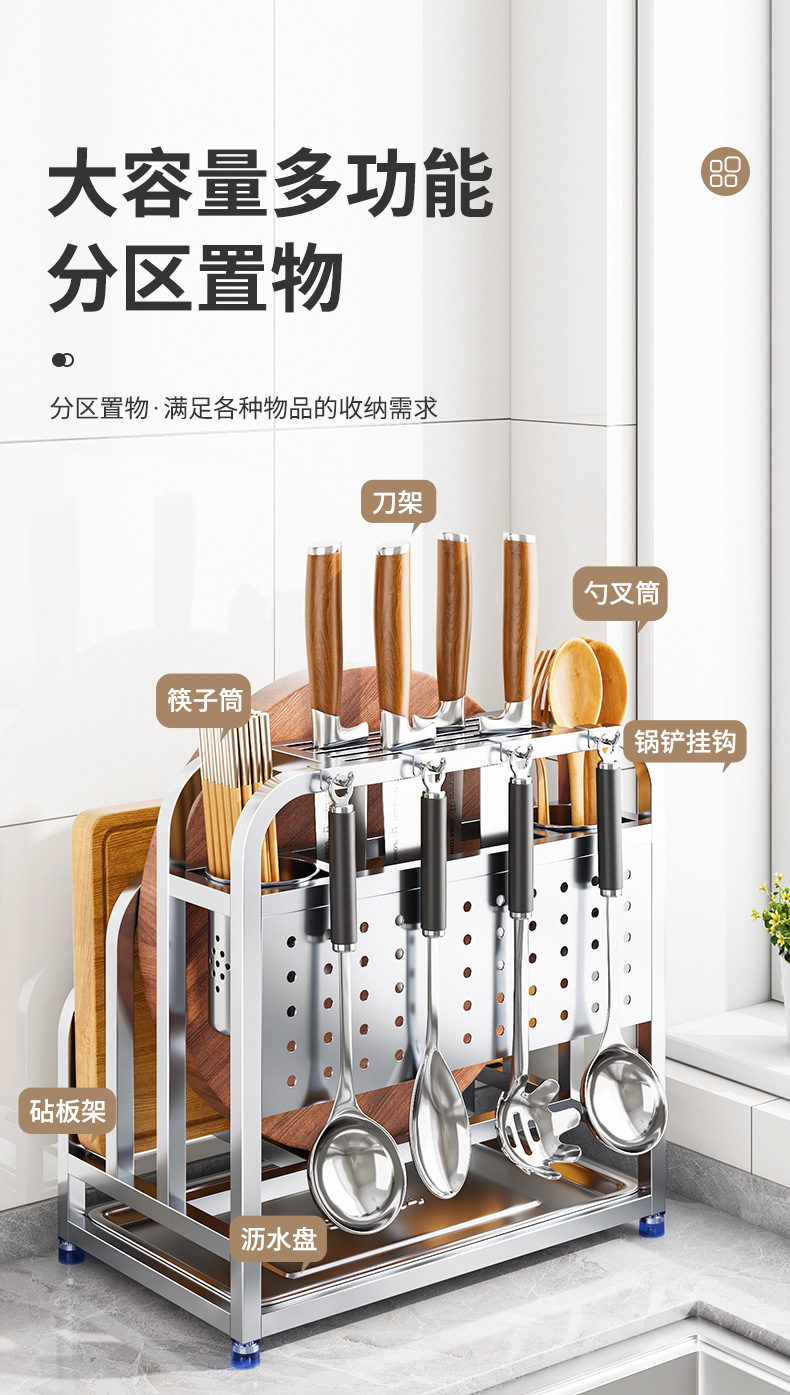 스테인레스 스틸 나이프 랙 주방 스토리지 랙 커팅 보드 랙 랙 올인원 주방 나이프 젓가락 커팅 보드 랙 스토리지 랙스토어 가기