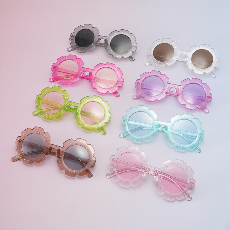 새로운 국경 자외선 보호 아기 선글라스 PC 필름 조수 멀티 컬러 패션 어린이 안경 해바라기 선글라스 여성