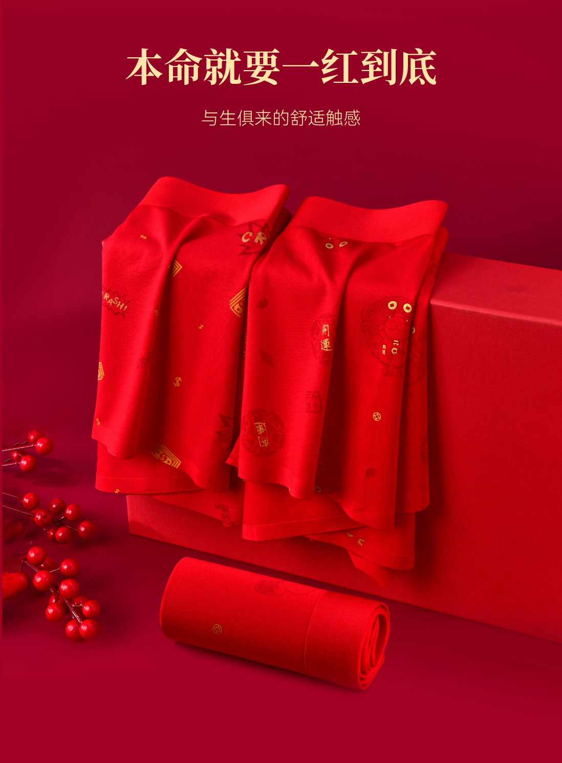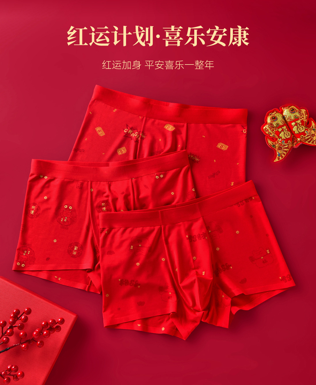 모달 남성 속옷 빨간 편안한 통기성 인쇄 파우치 3D 공간 캡슐 벤밍 니안 인쇄 박스
