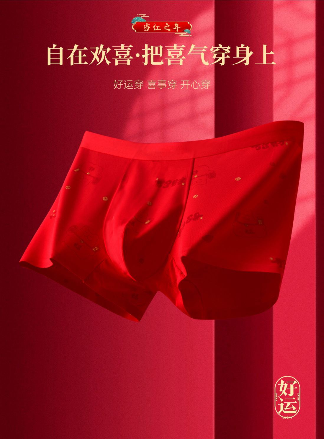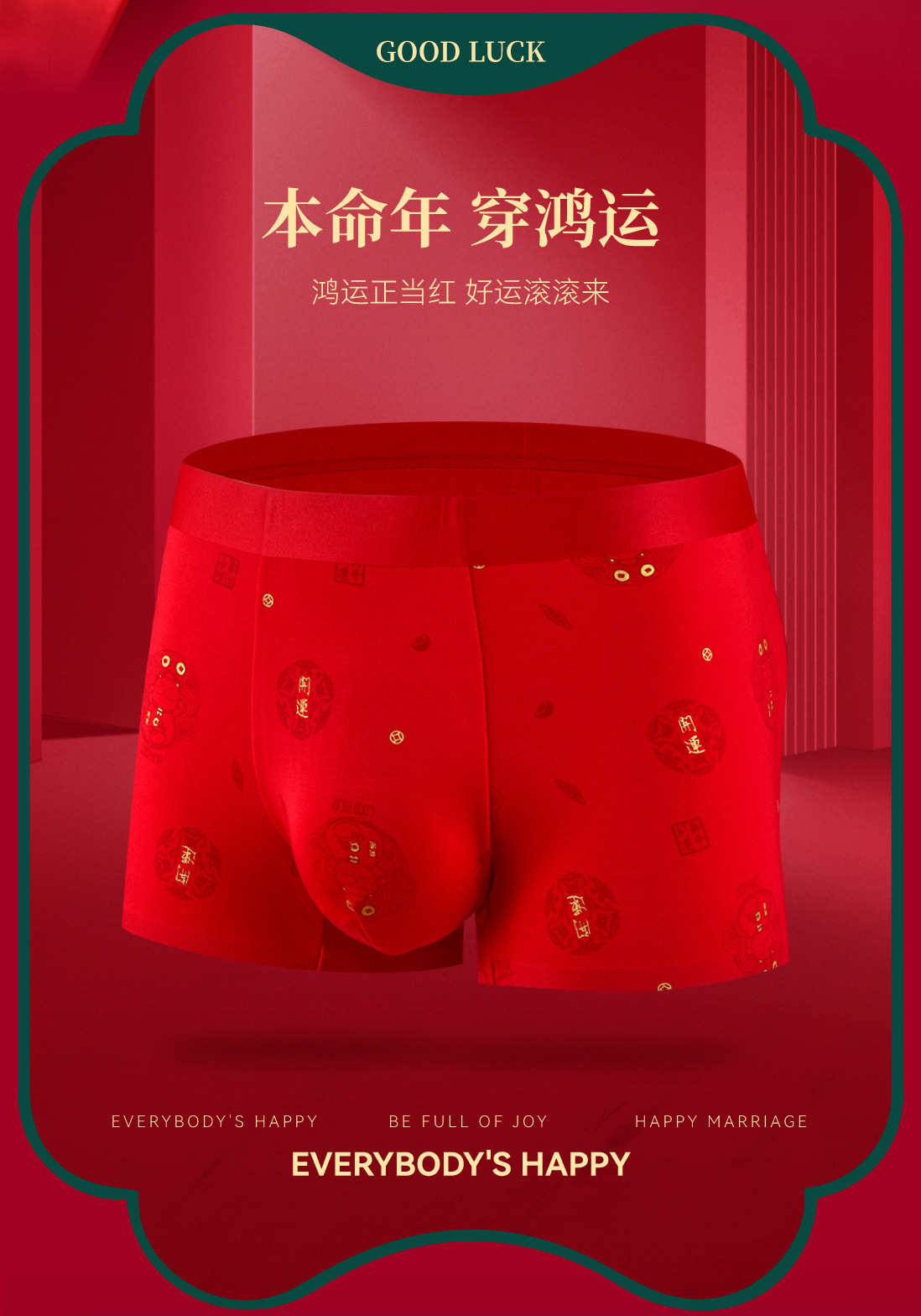 모달 남성 속옷 빨간 편안한 통기성 인쇄 파우치 3D 공간 캡슐 벤밍 니안 인쇄 박스스토어 가기