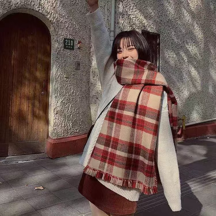 스카프 체크무늬 크리스마스 분위기 레트로 한국 스타일 다용도 니트 겨울 고급스러운 레드 숄 스카프스토어 가기
