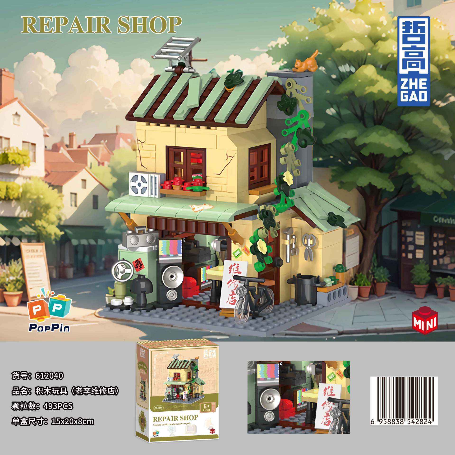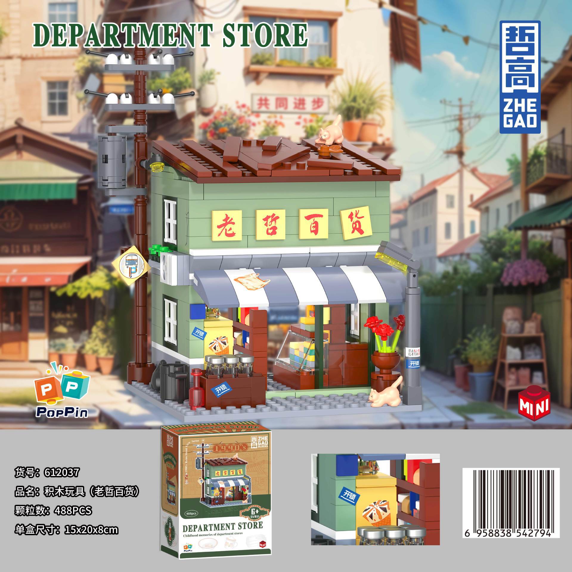 Zhegao 612037-40 레트로 스트리트 뷰 시리즈 년 추억 라이프 스트리트 조립 빌딩 블록 장난감 선물스토어 가기