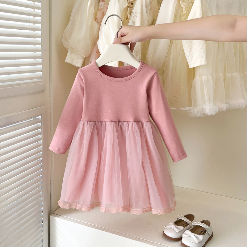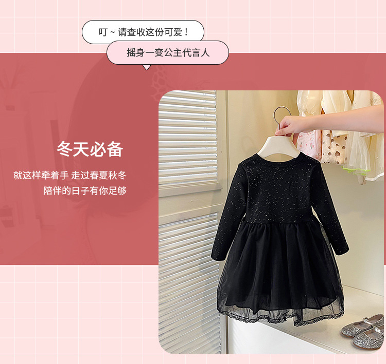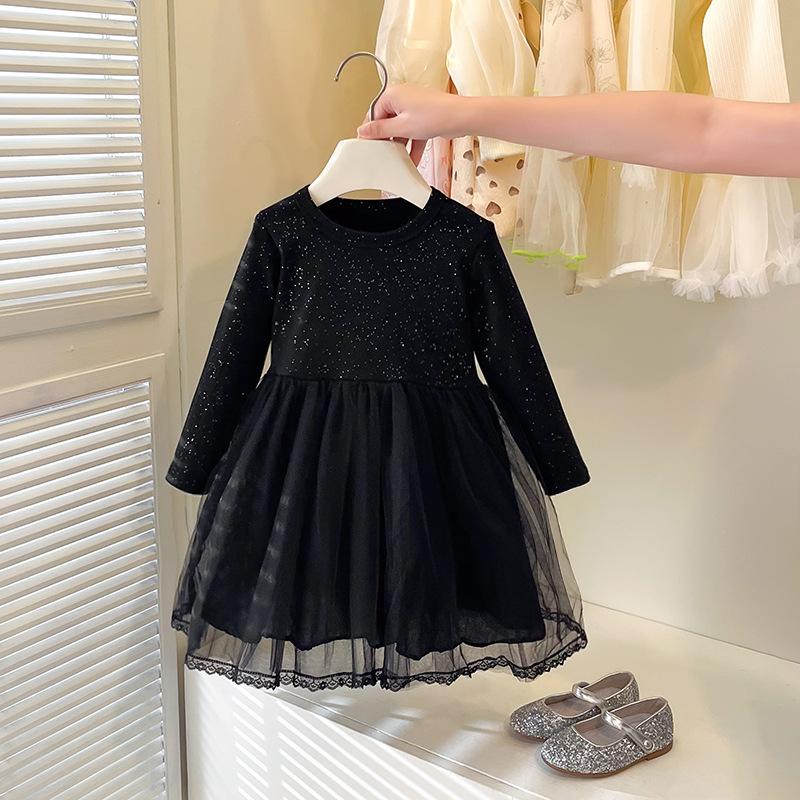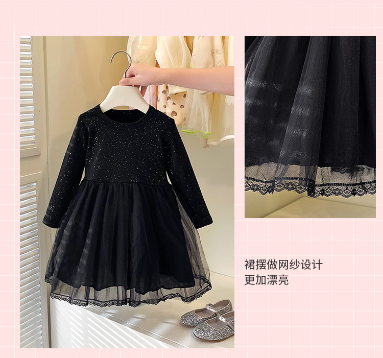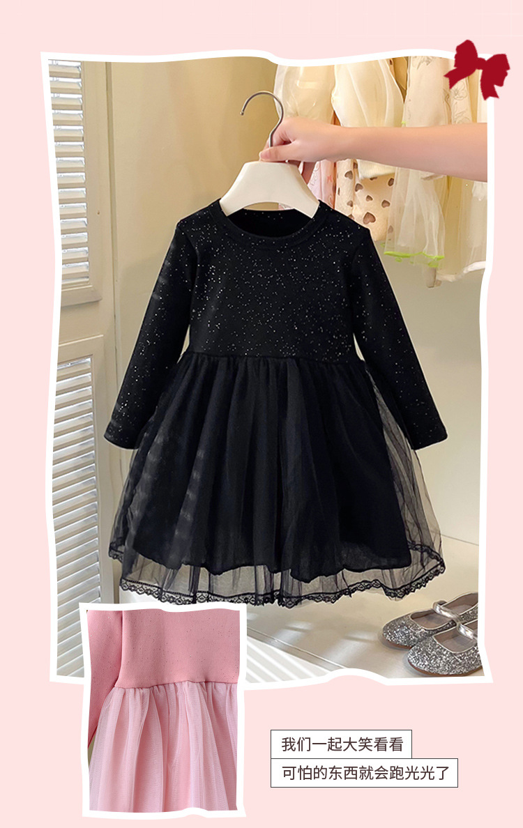 2024 가을과 겨울 새로운 소녀 긴 소매 원피스 소녀 생일 밝은 반짝이는 원사 스커트 여성 보물 원피스스토어 가기