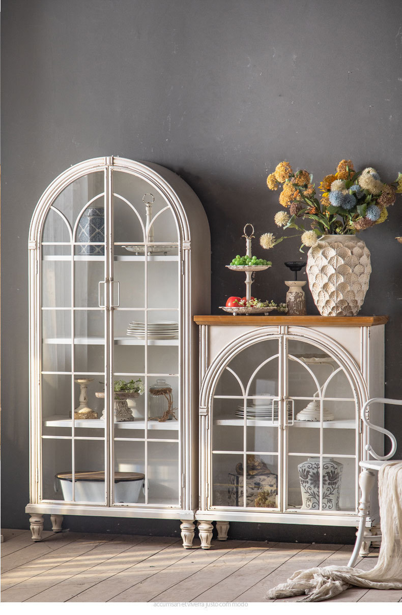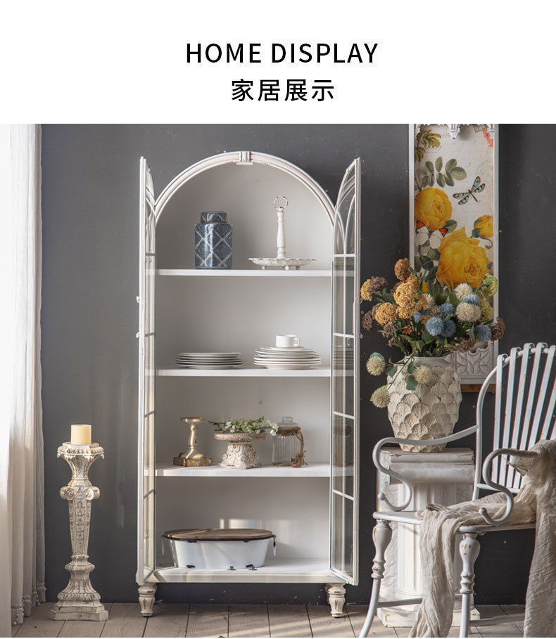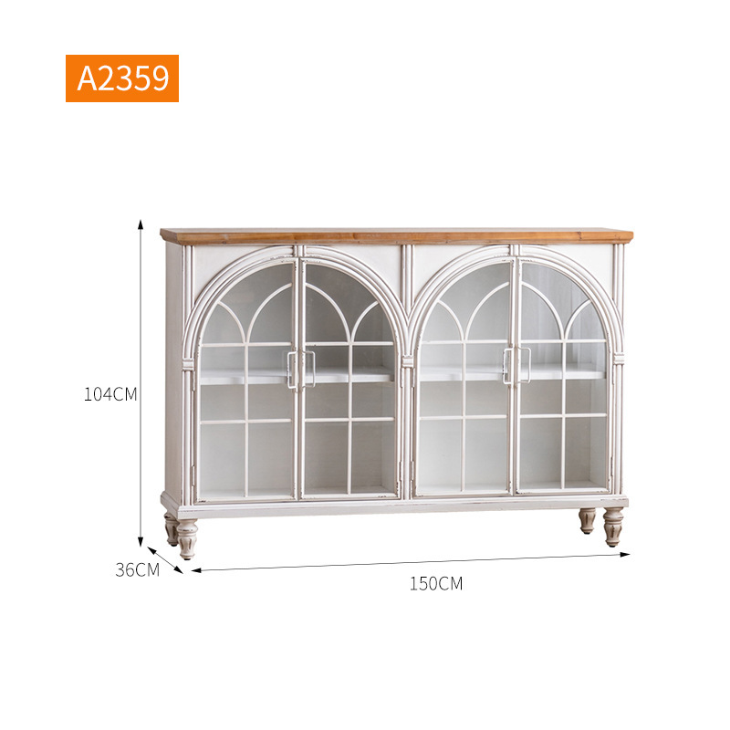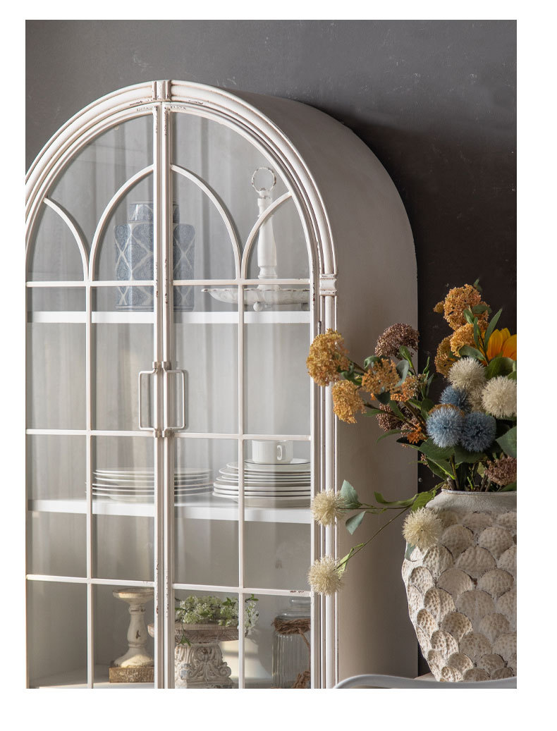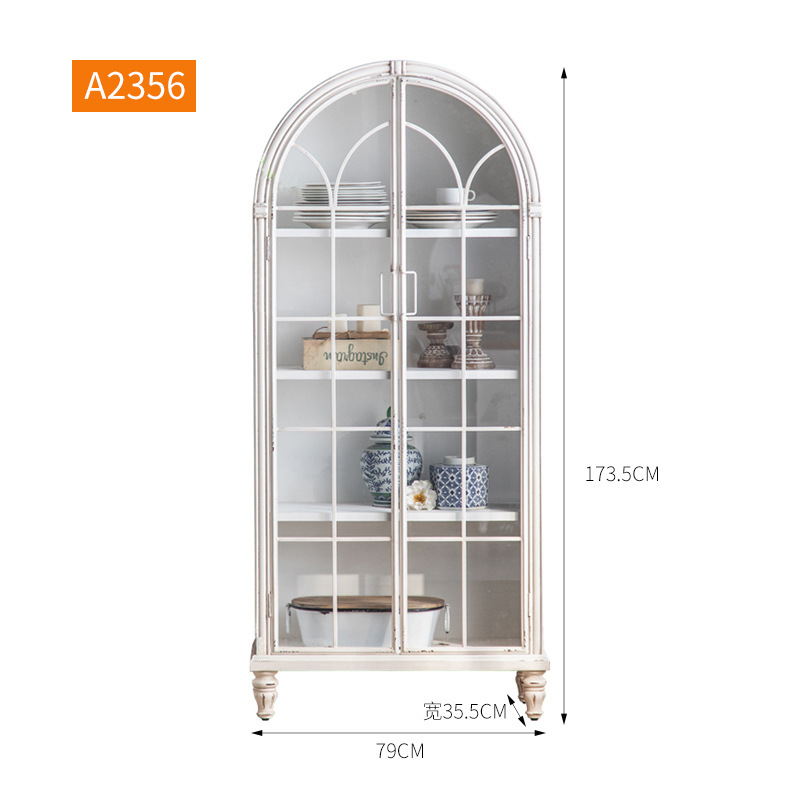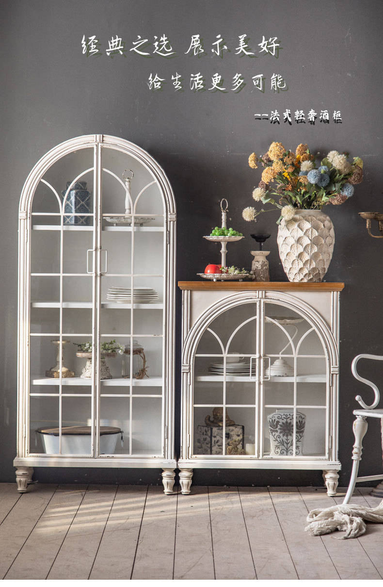프랑스 아치 도어 보관 캐비닛 주방 유리 도어 보관 찬장 쇼핑몰 상점 빈티지 와인 디스플레이 캐비닛