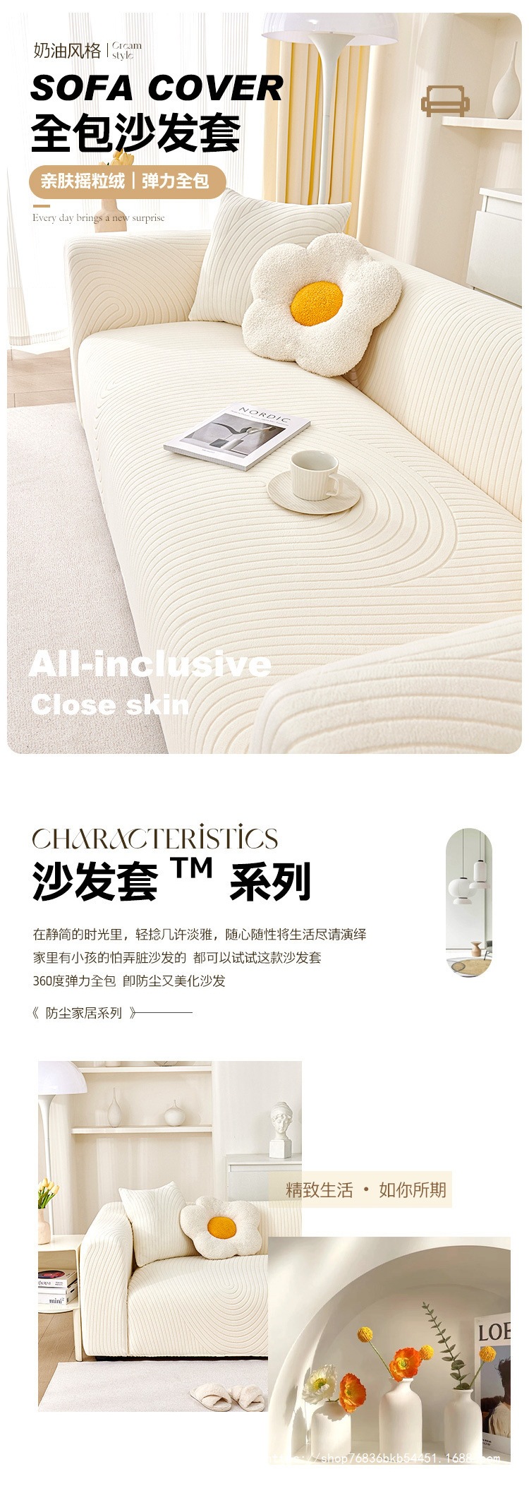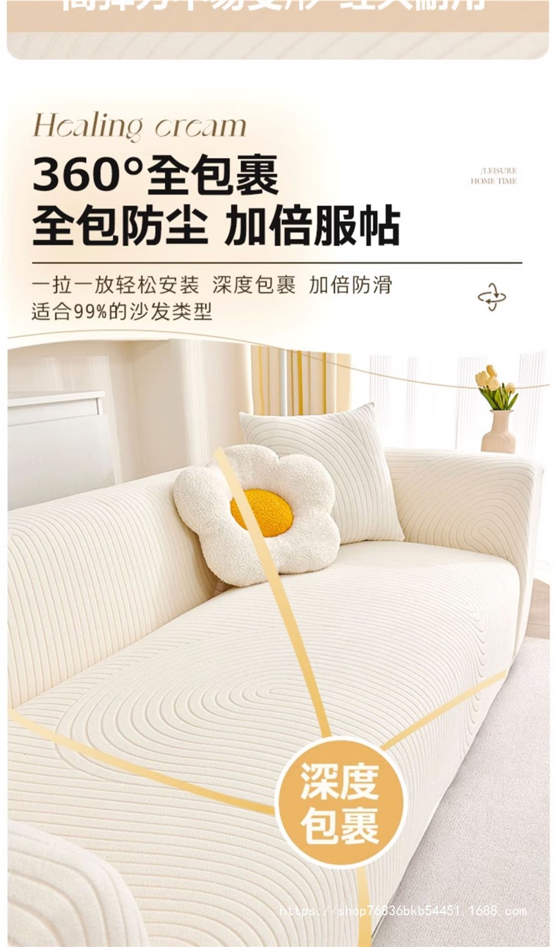 현대 간단한 크림 스타일 소파 커버 모든 것을 포함하는 2024 사계절 유니버설 안티 고양이 스크래치 탄성 소파 커버스토어 가기