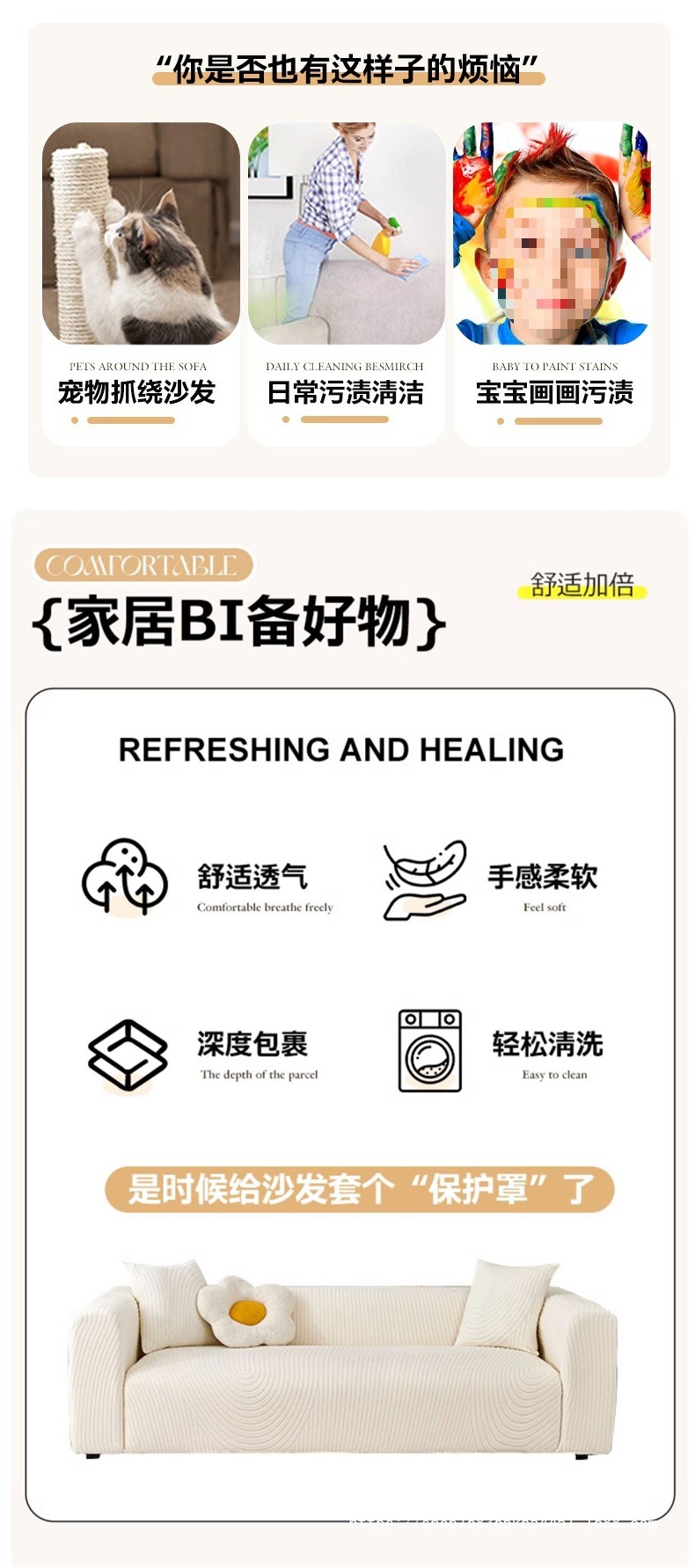 • 3인용 [190-230cm 소파에 적합]|무료 베갯잇]