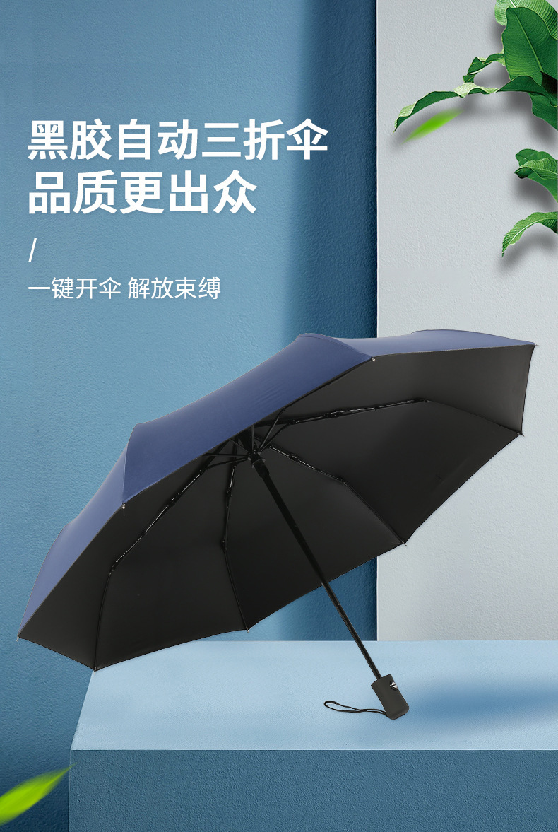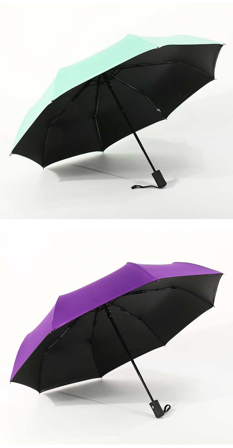 접이식 사업 이중 사용 선물 완전 자동 광고 우산 인쇄 가능한 로고 검은 고무 태양 보호 및 햇빛 3 배 우산스토어 가기