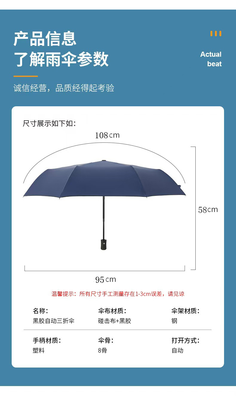 접이식 사업 이중 사용 선물 완전 자동 광고 우산 인쇄 가능한 로고 검은 고무 태양 보호 및 햇빛 3 배 우산