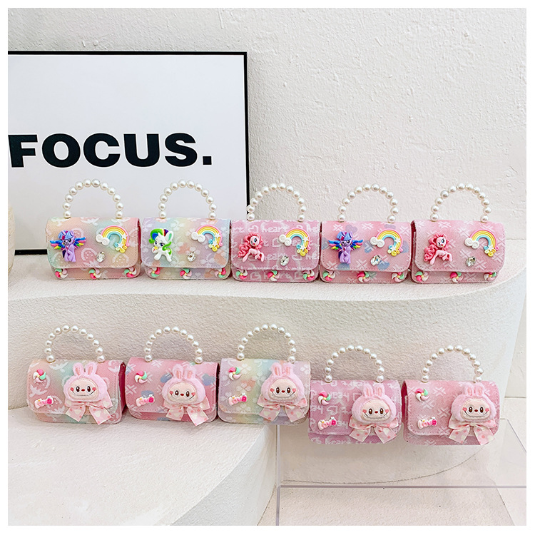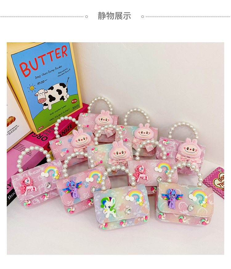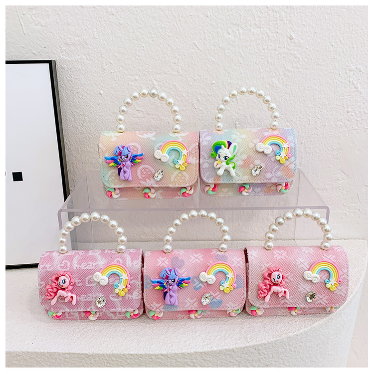 다이파 어린이 가방 소녀 귀여운 패션 작은 공주 진주 핸드백 소녀 만화 크로스 바디 가방 어깨 가방