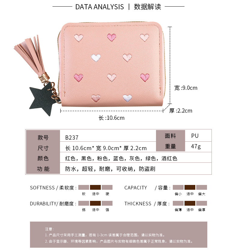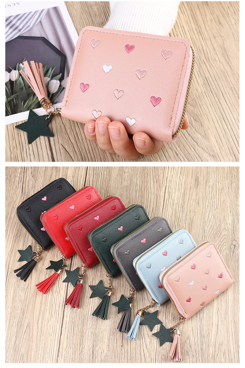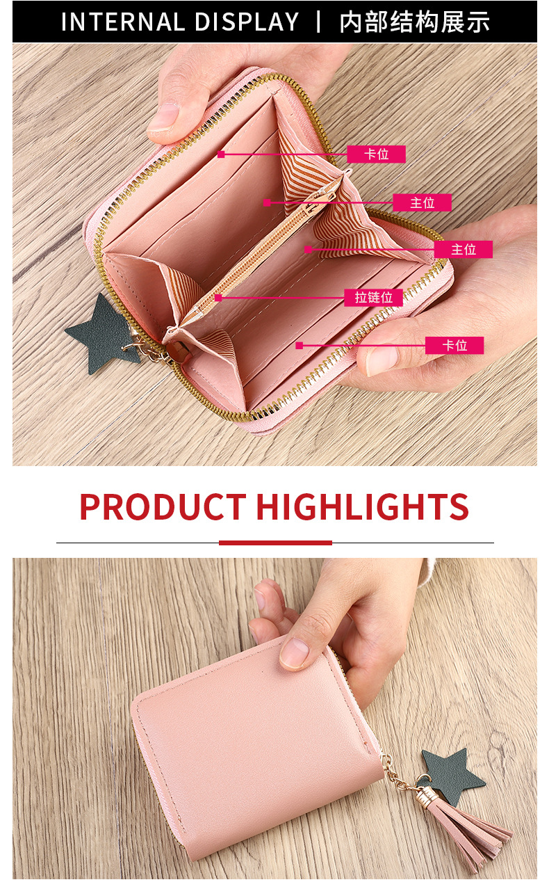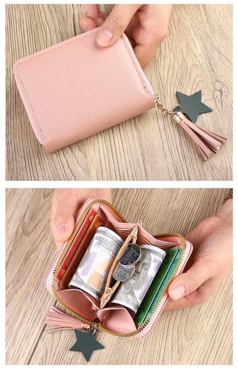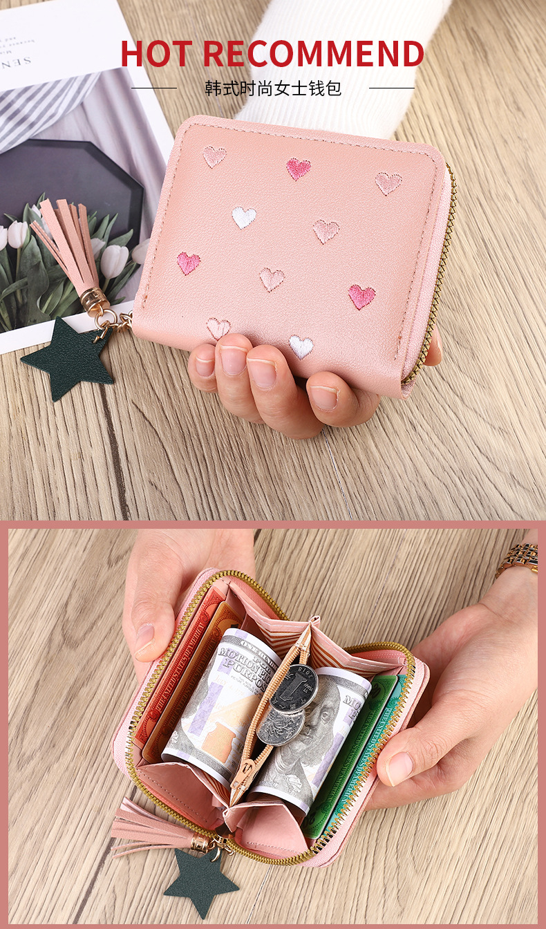 새로운 술 지퍼 지갑 숙녀 짧은 한국어 버전 다기능 귀여운 스타일 여성 동전 지갑 90% off 다기능 돈