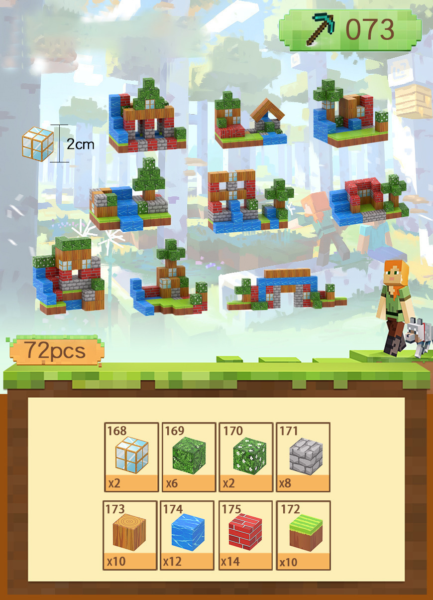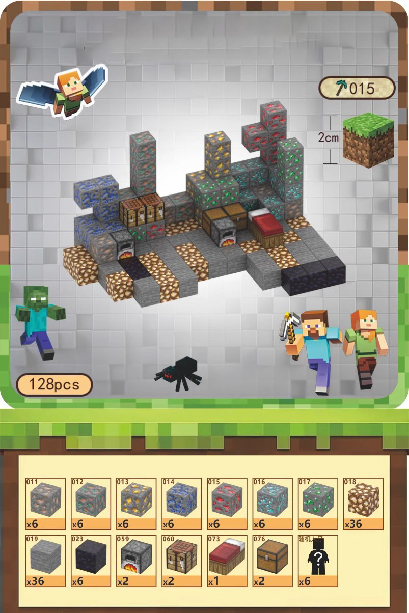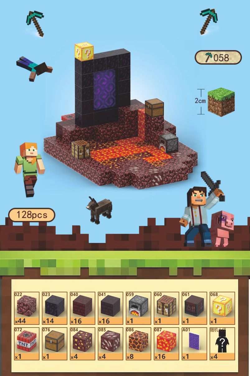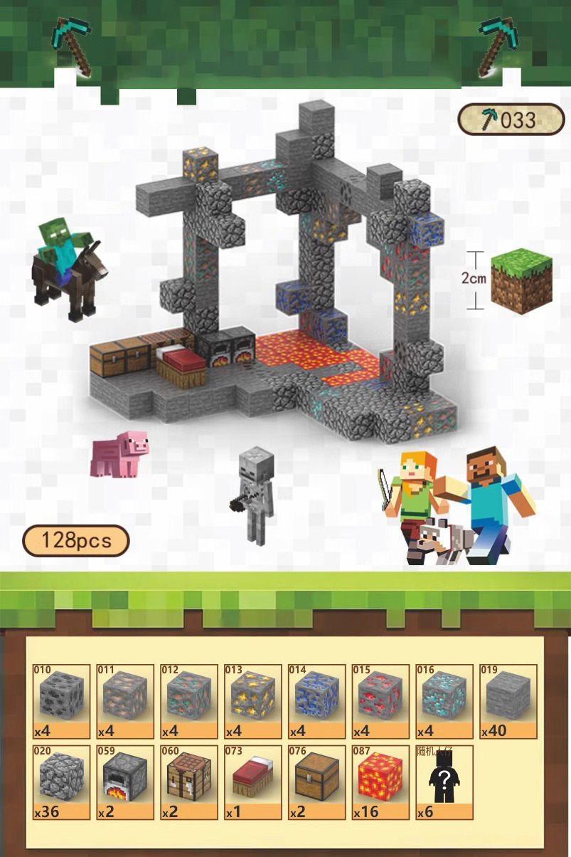 국경 간 MC 세계 자기 빌딩 블록 조립 된 자기 큐브 광산 구멍 기관 오두막 어린이 교육 자기 장난감스토어 가기