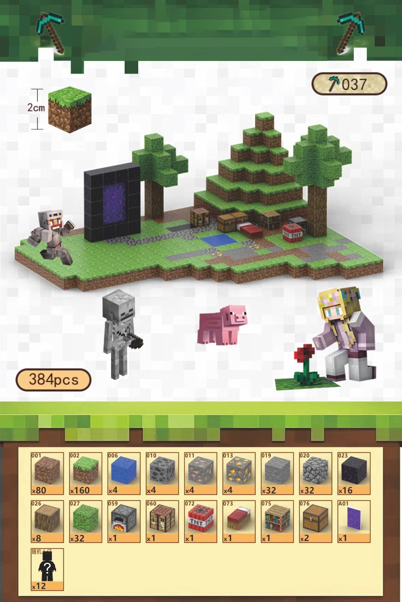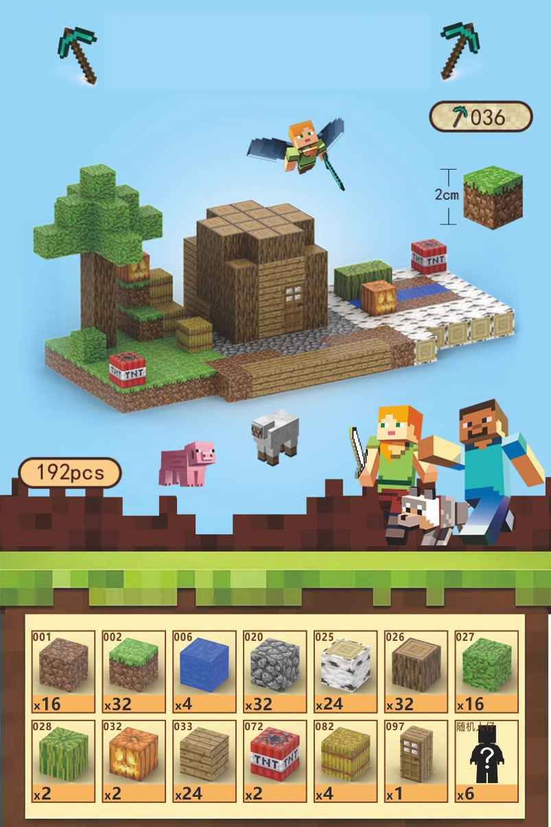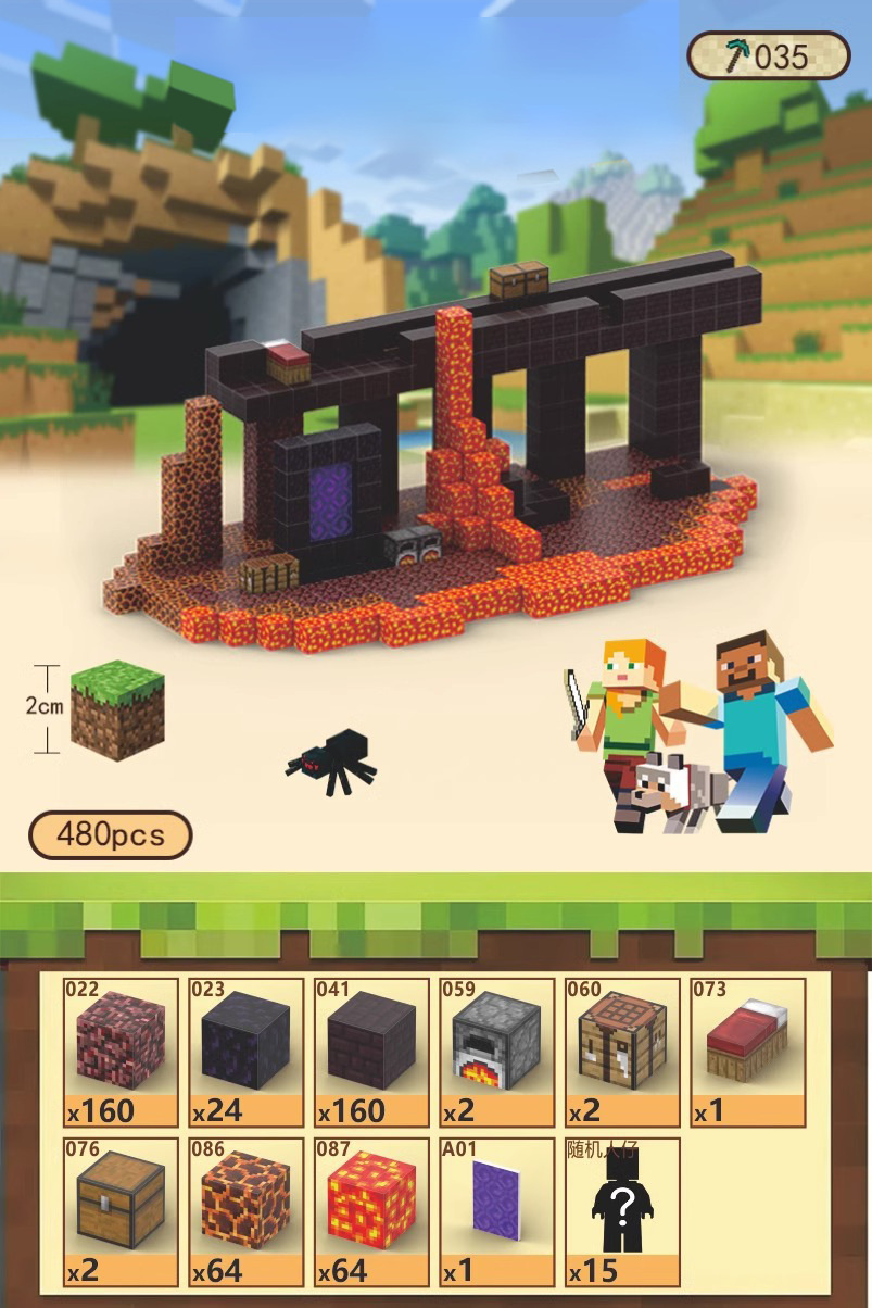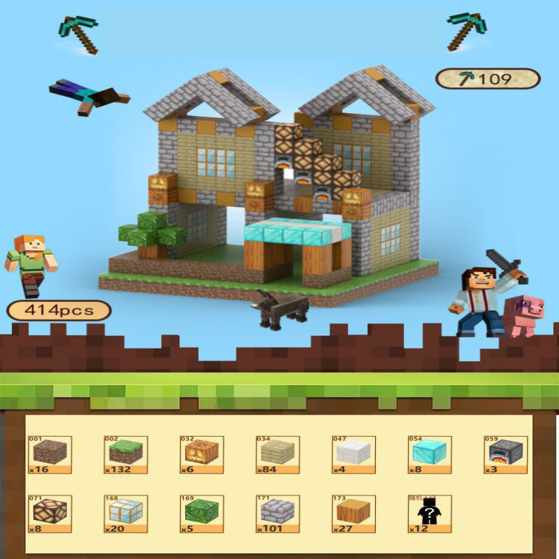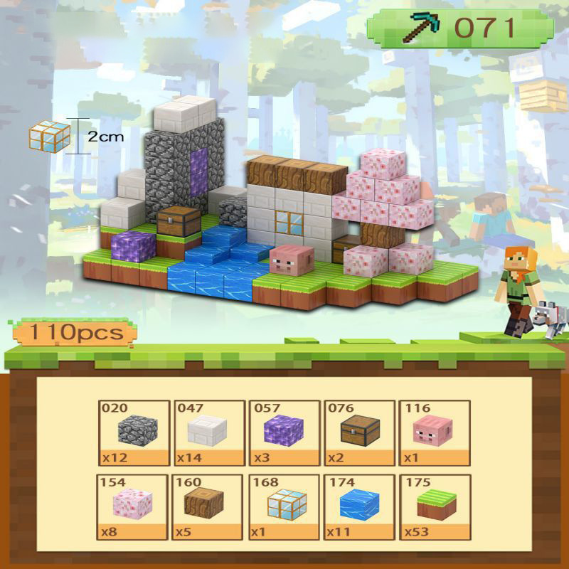 국경 간 MC 세계 자기 빌딩 블록 조립 된 자기 큐브 광산 구멍 기관 오두막 어린이 교육 자기 장난감