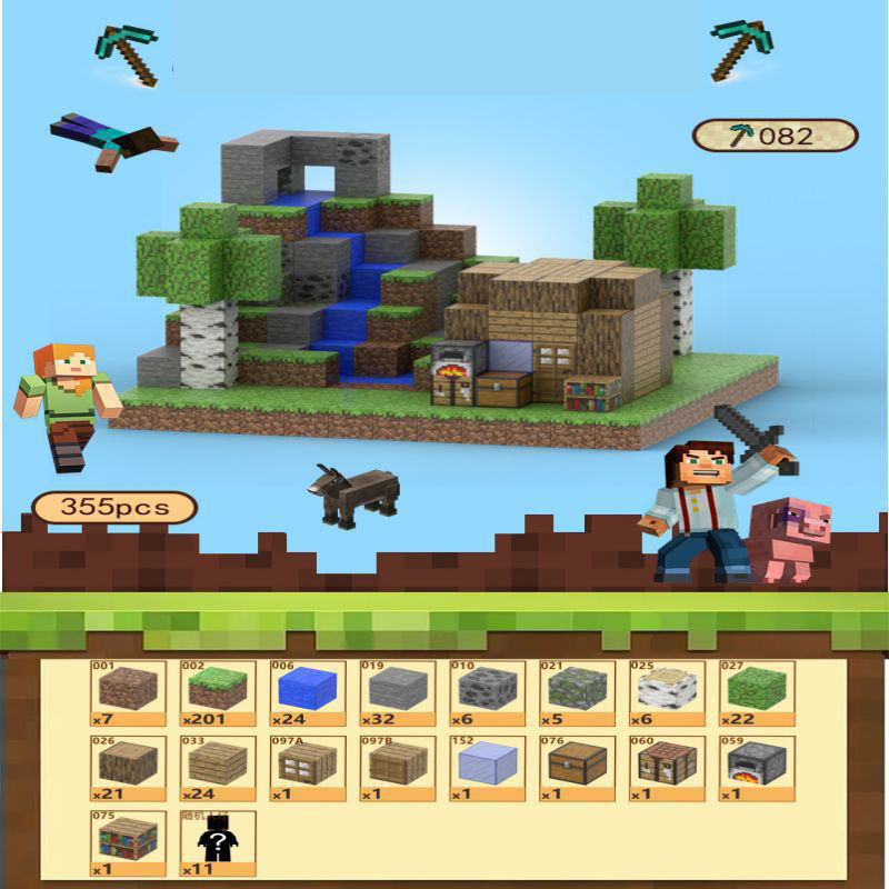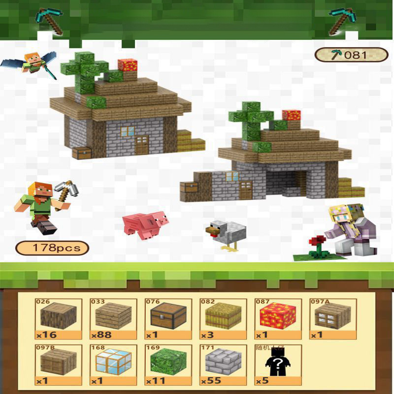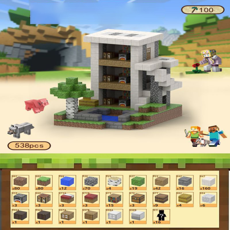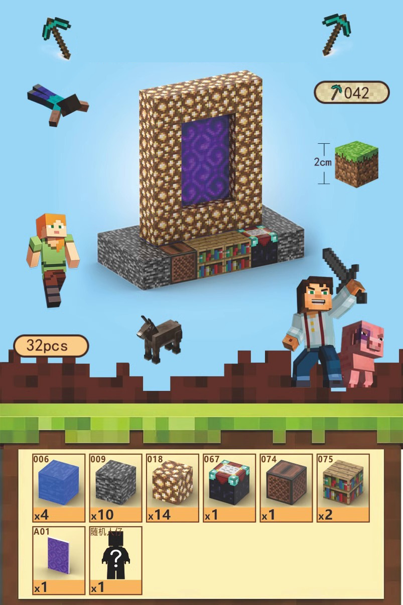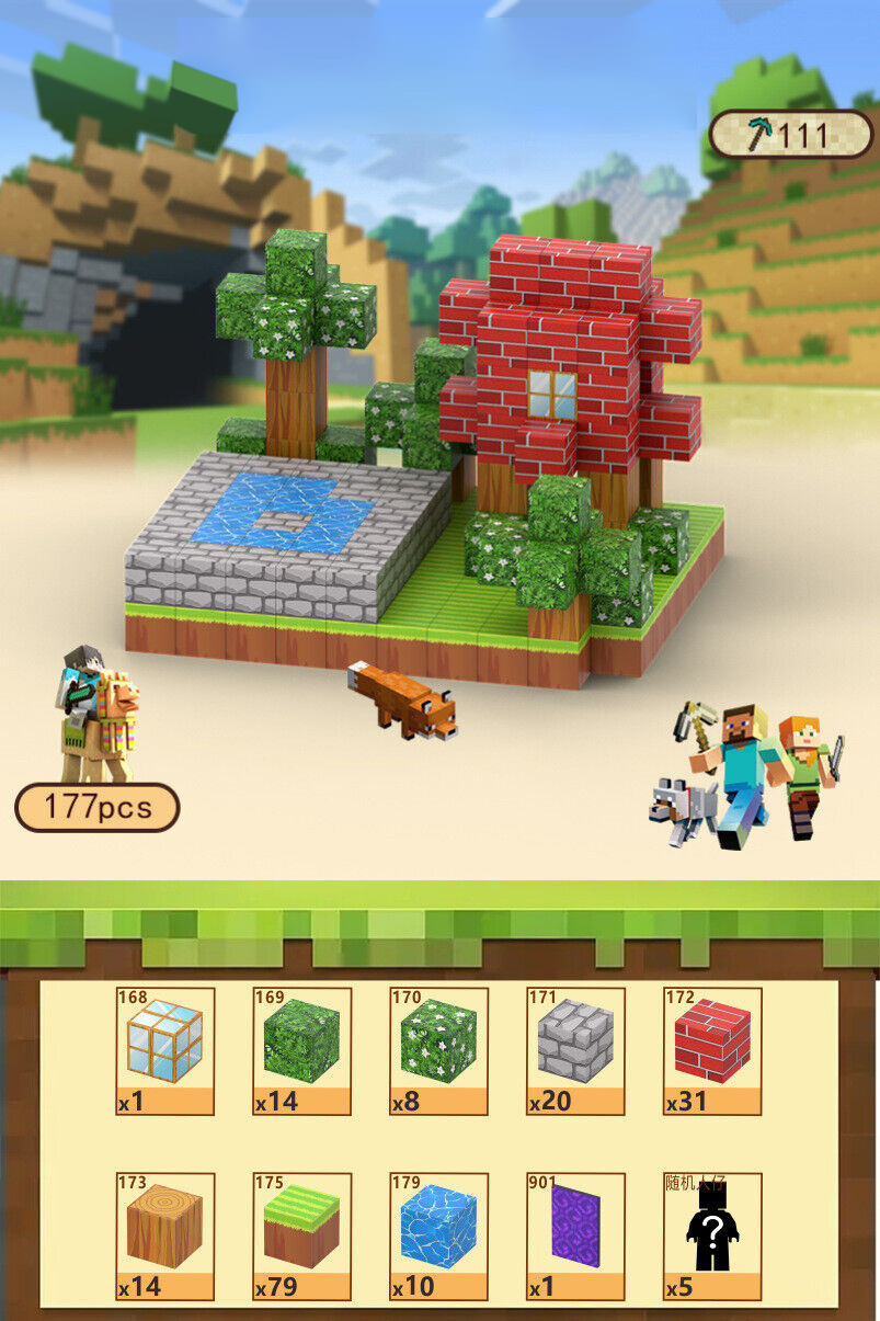 국경 간 MC 세계 자기 빌딩 블록 조립 된 자기 큐브 광산 구멍 기관 오두막 어린이 교육 자기 장난감
