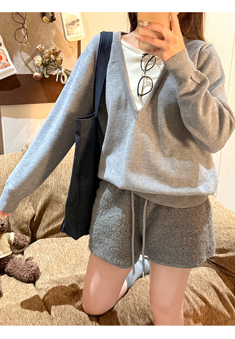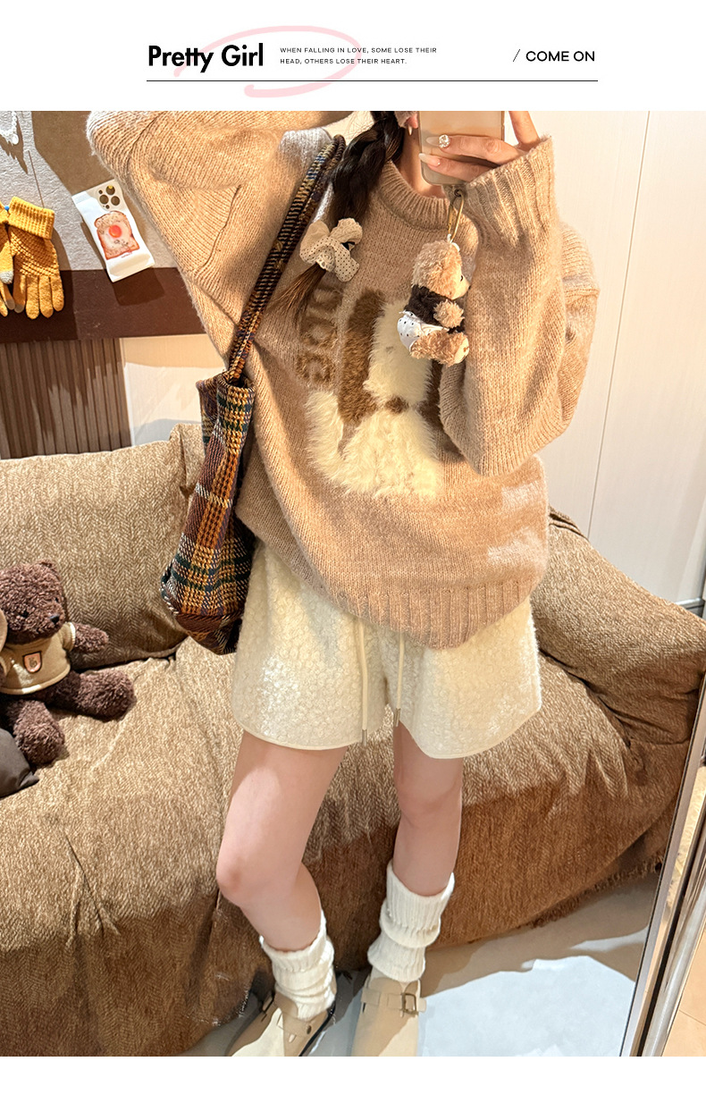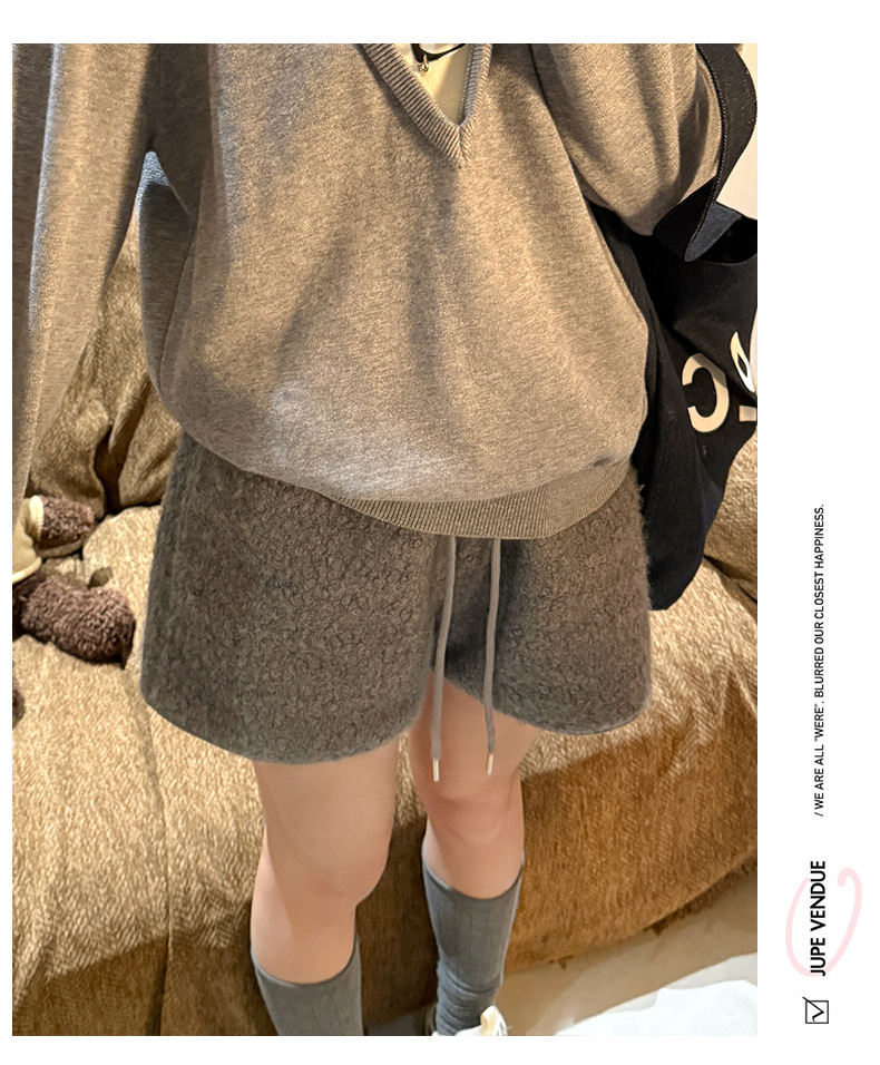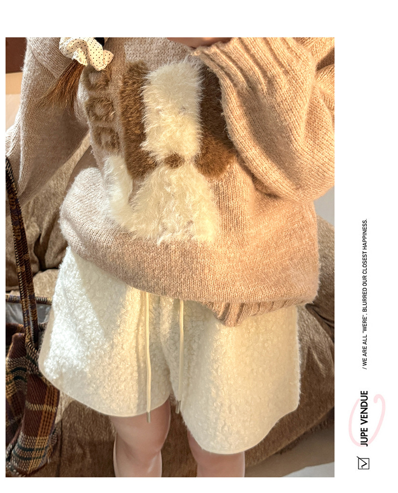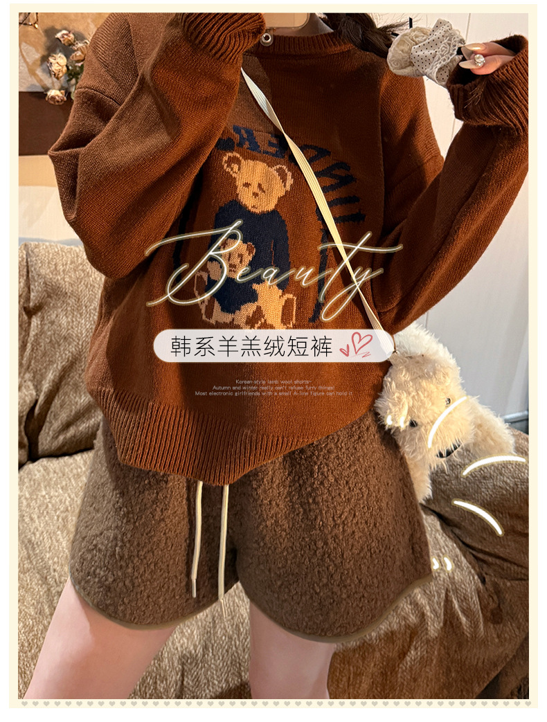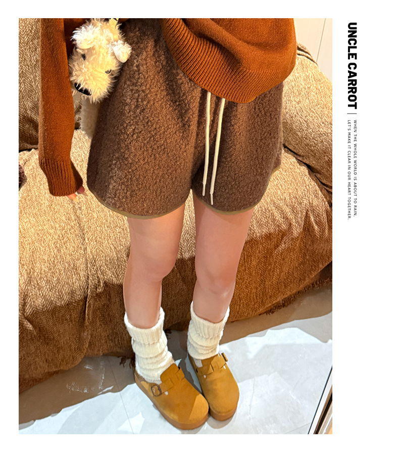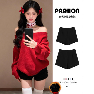 양가죽 반바지 여성의 겨울 높은 허리 검은 디자인 센스 따뜻한 느슨한 캐주얼 바지 작은 봉제 뜨거운 바지스토어 가기