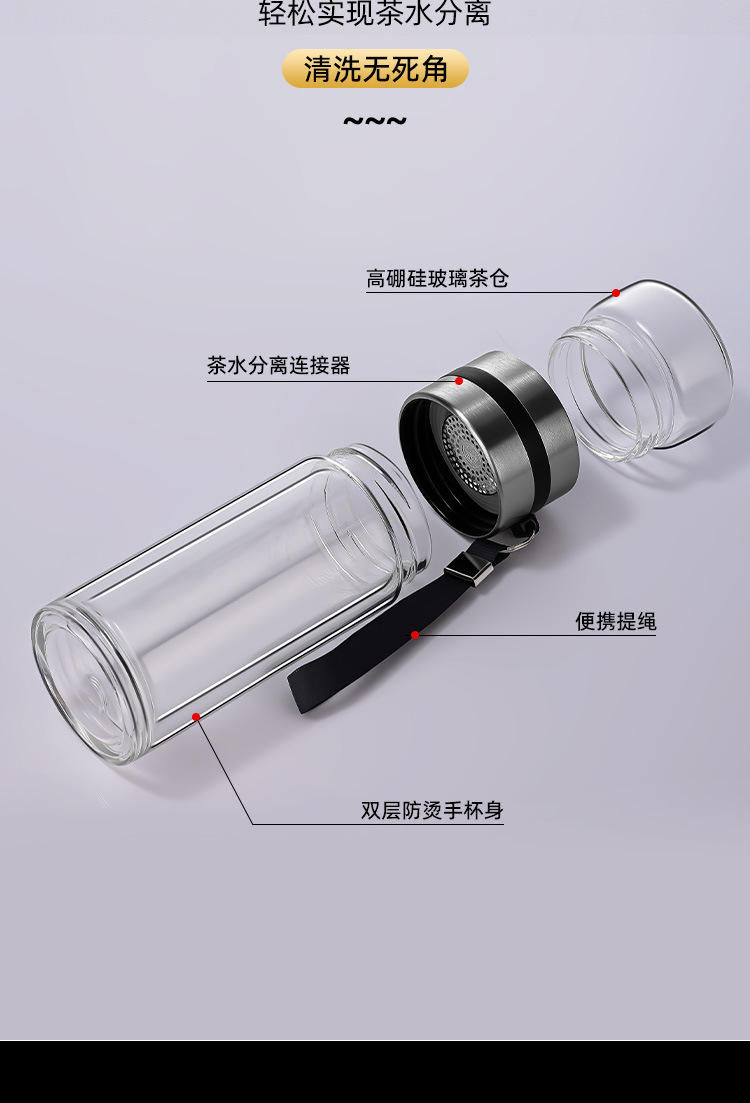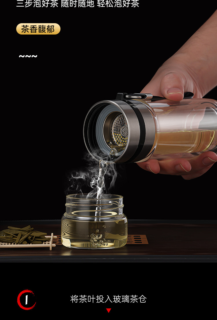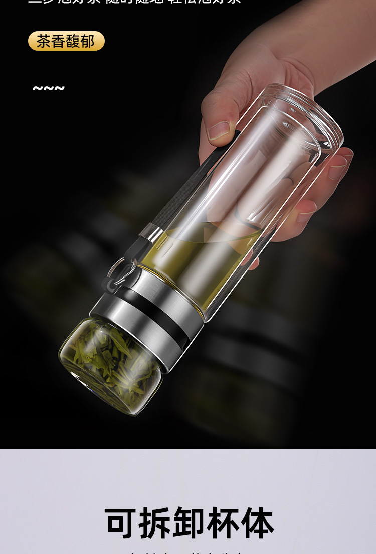 차와 물 분리 컵, 휴대용 필터 컵, 개인 다도 이중 유리 물컵, 남성용 2025 신제품스토어 가기