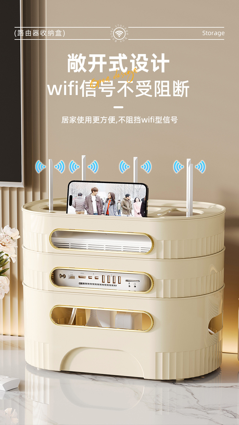源头厂家,跨境专供,三天打样,七天出货,支持一件代发,支持加工定制和 OEM 定制,支持品牌代工。置物架 多功能 路由器收纳盒 电视机顶盒