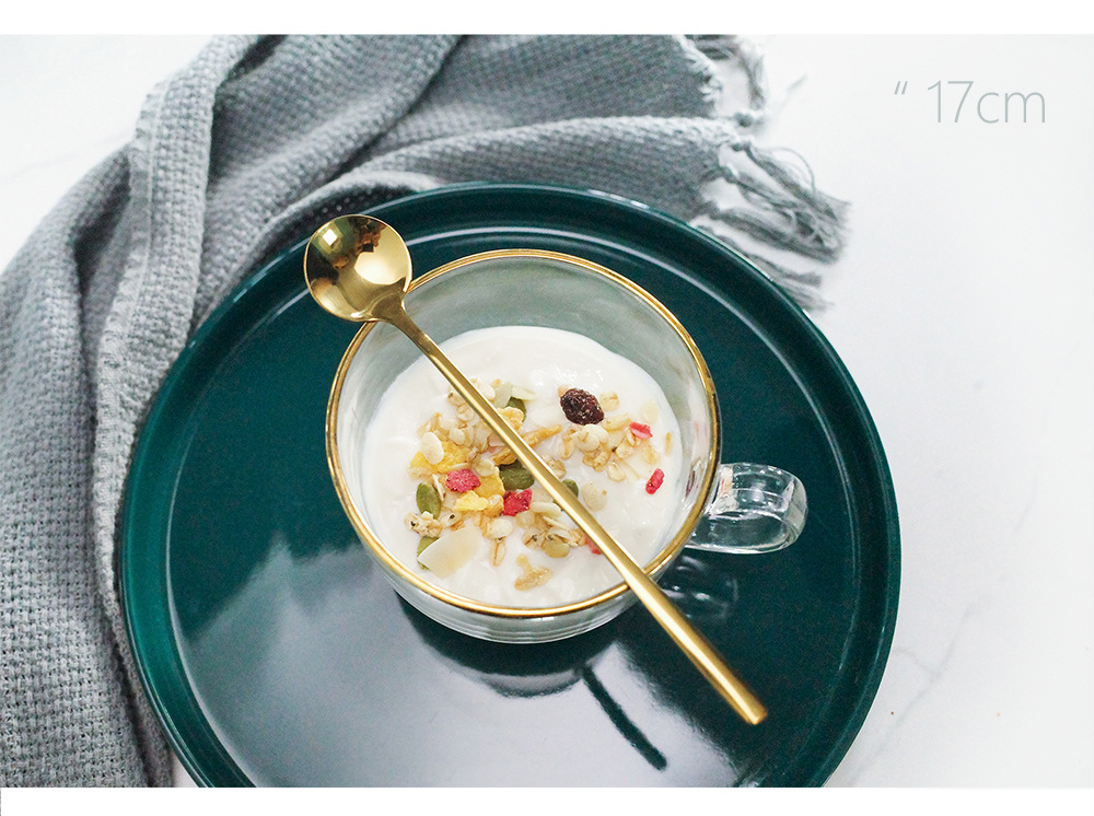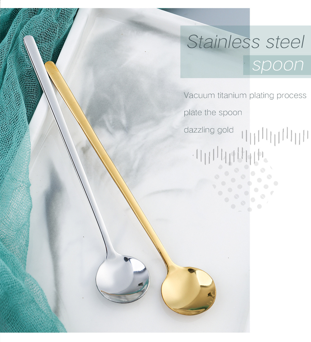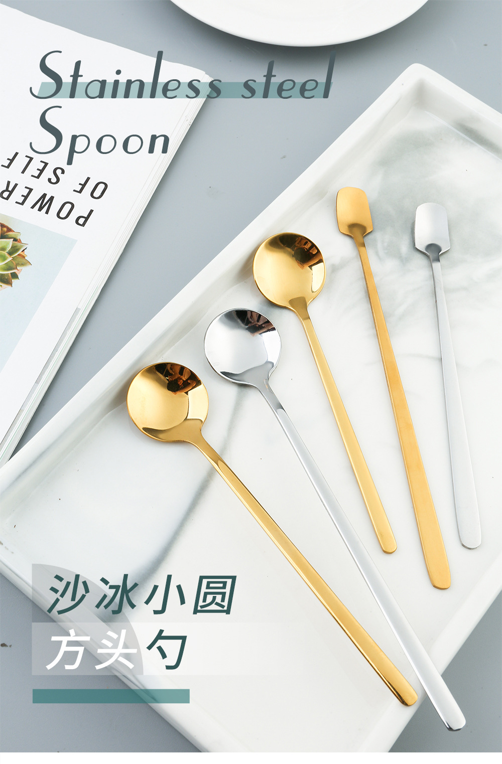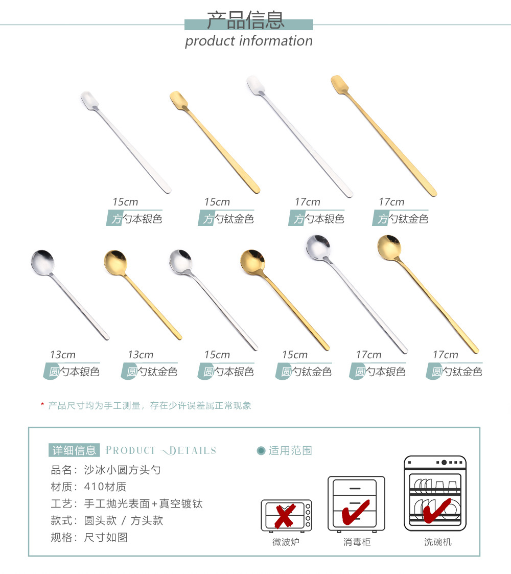 Q 작은 둥근 숟가락 스테인리스 커피 스푼 디저트 혼합 숟가락 긴 손잡이 아이스크림 숟가락 아이스크림 숟가락 사각 얼음 숟가락 작은 숟가락스토어 가기