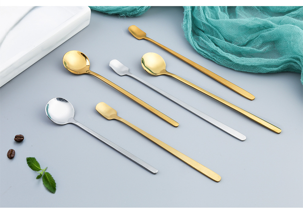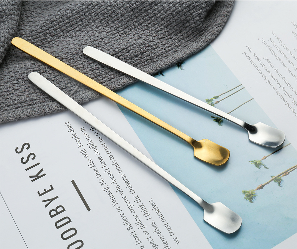 Q 작은 둥근 숟가락 스테인리스 커피 스푼 디저트 혼합 숟가락 긴 손잡이 아이스크림 숟가락 아이스크림 숟가락 사각 얼음 숟가락 작은 숟가락