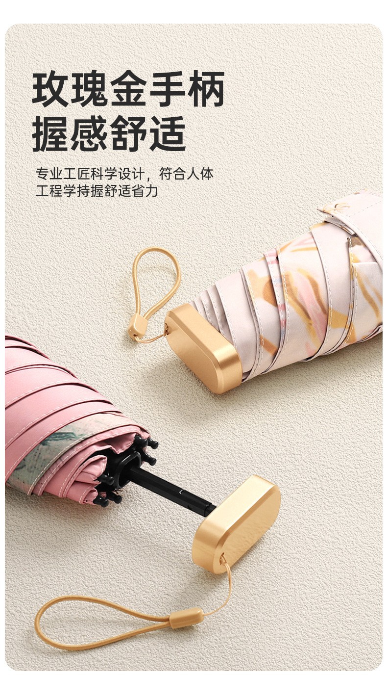 미니 유화 5 배 우산 작은 휴대용 선 스크린 UV 보호 블랙 접착제 태양 우산 접히는 우산 학생 여성
