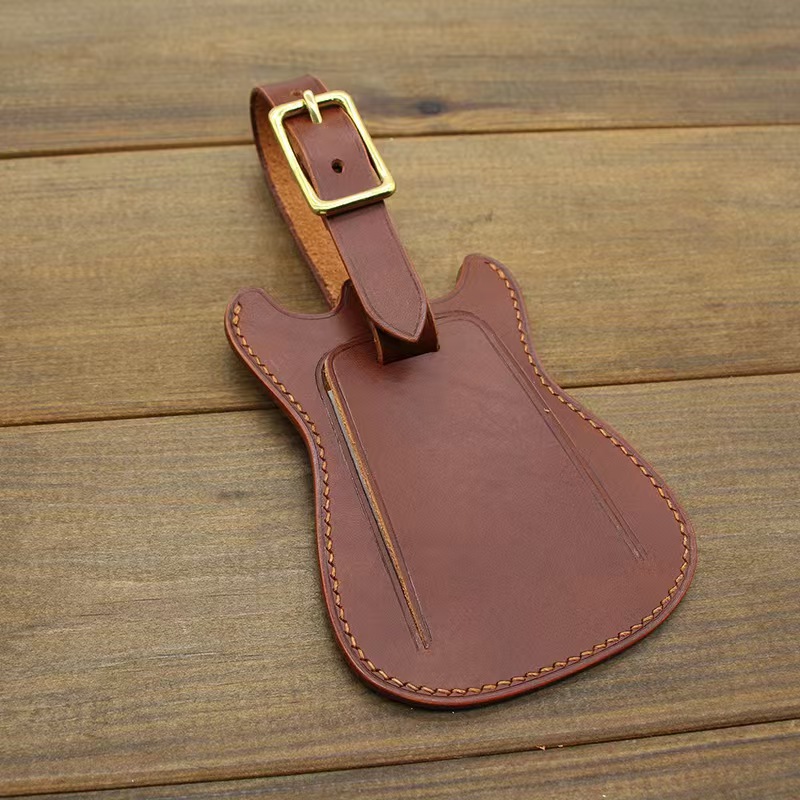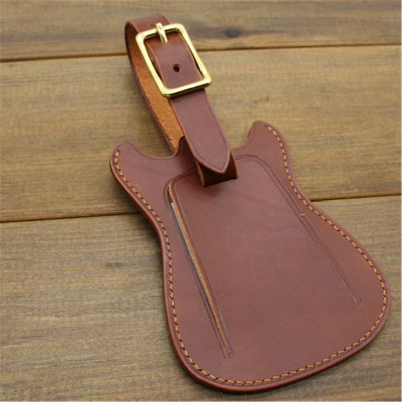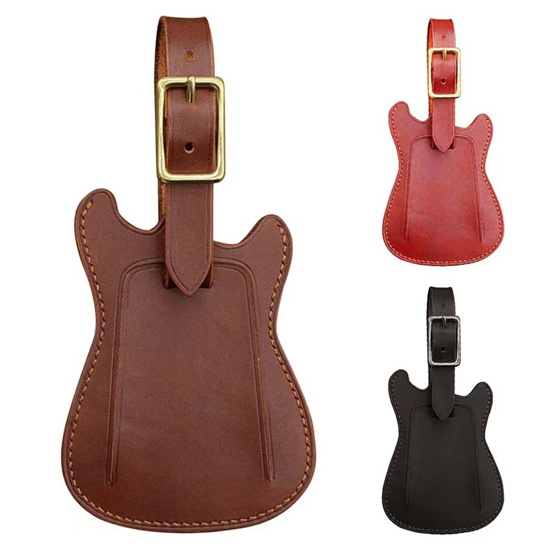 국경 간 기타 모양의 수하물 태그 PU 라벨 가방 배낭 탑승권 태그 키 체인 가방 공장 주문스토어 가기