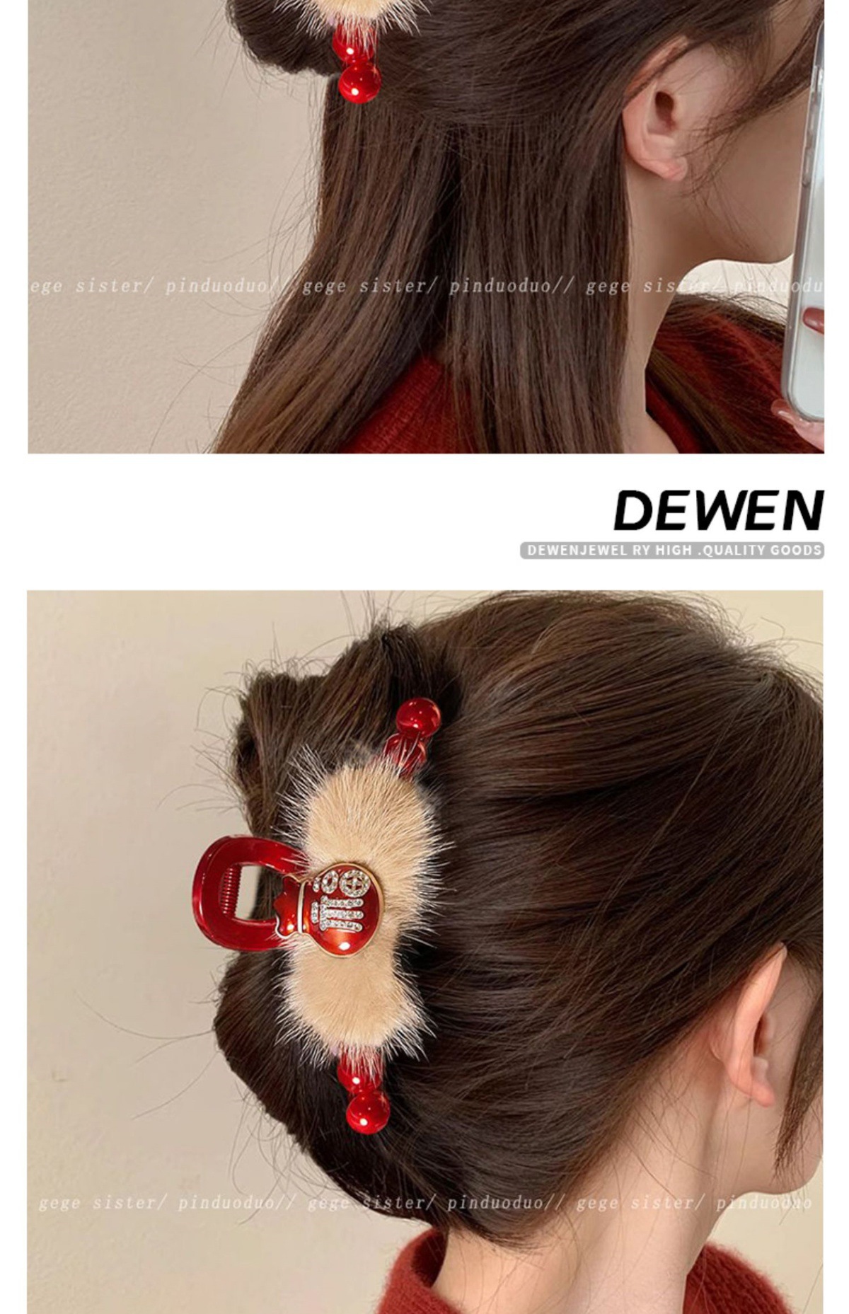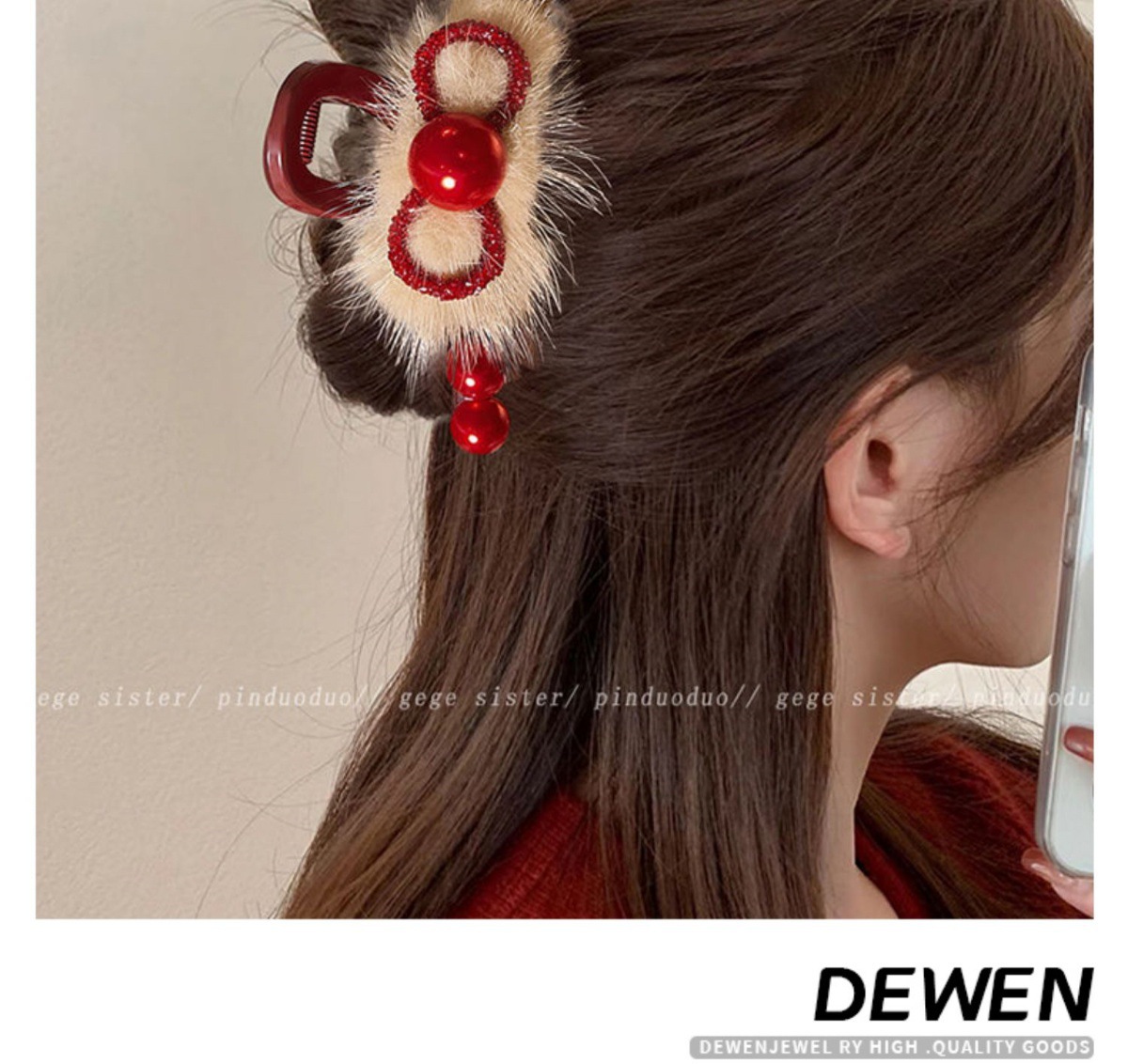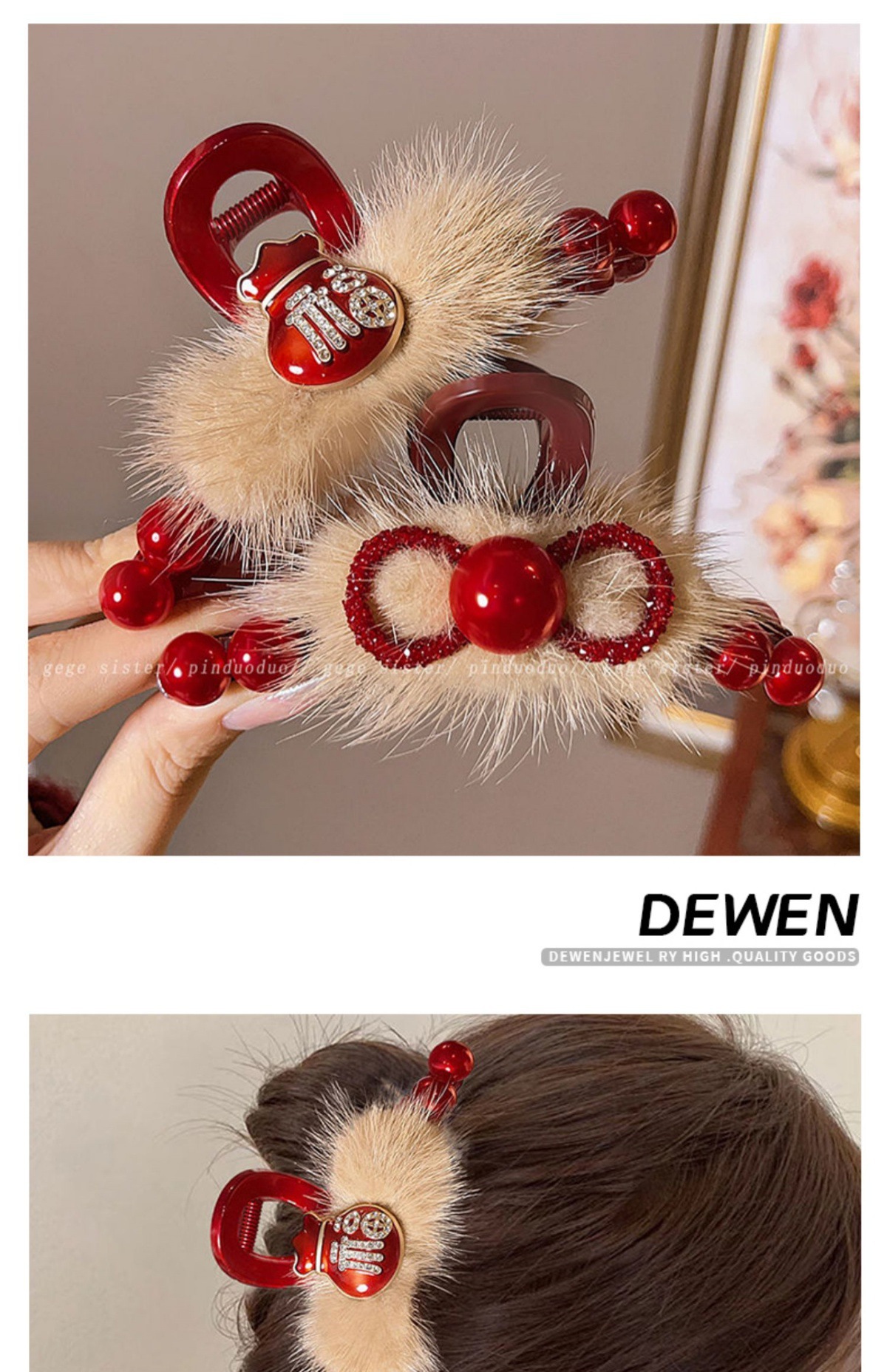 • 레드비즈 밍크 헤어클립-11cm