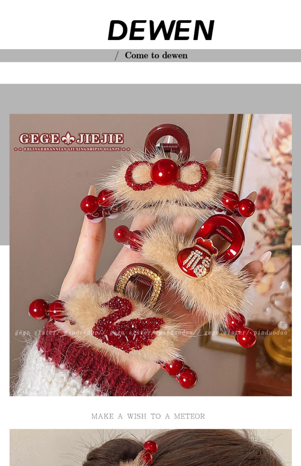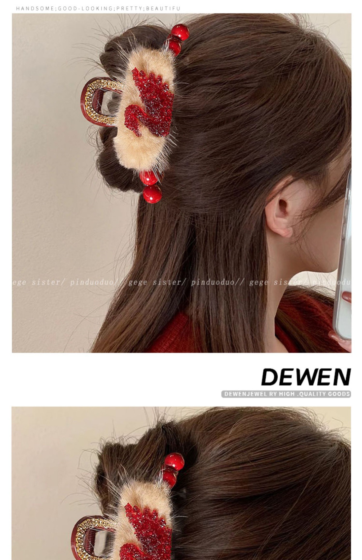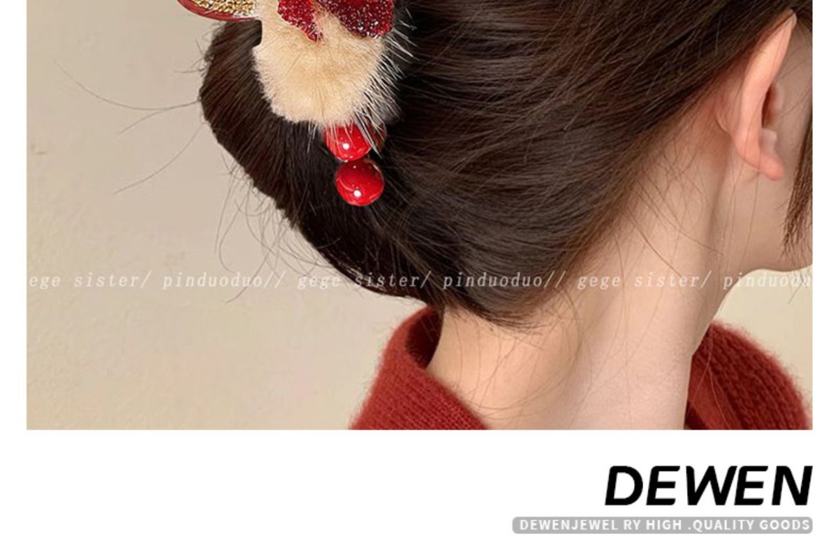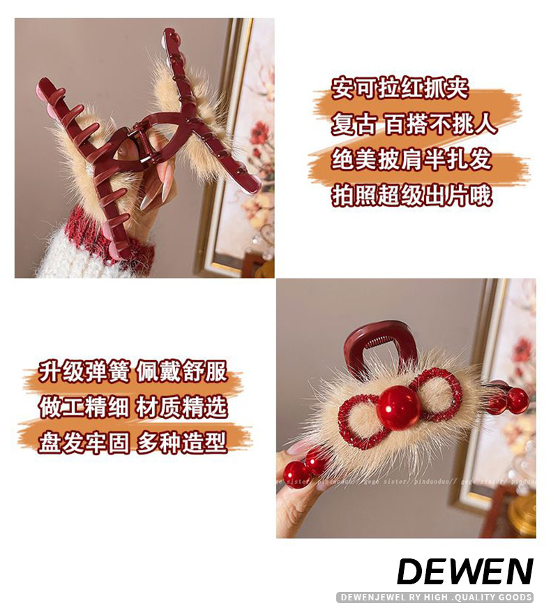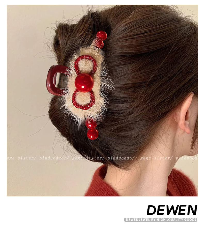 빨간 봉제 백조 그랩 클립 여성의 하이 엔드 센스 마오 헤어 클립 머리 상어 클립 가을 겨울 새해 축제 헤어 액세서리스토어 가기