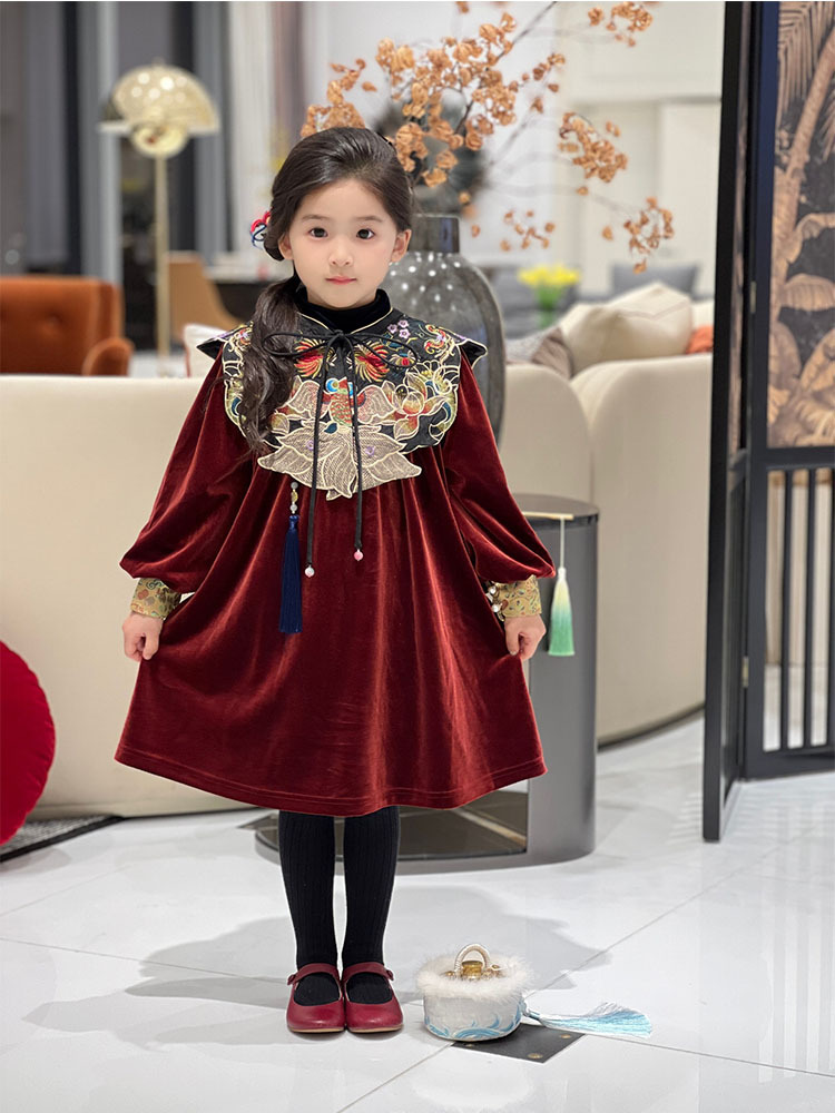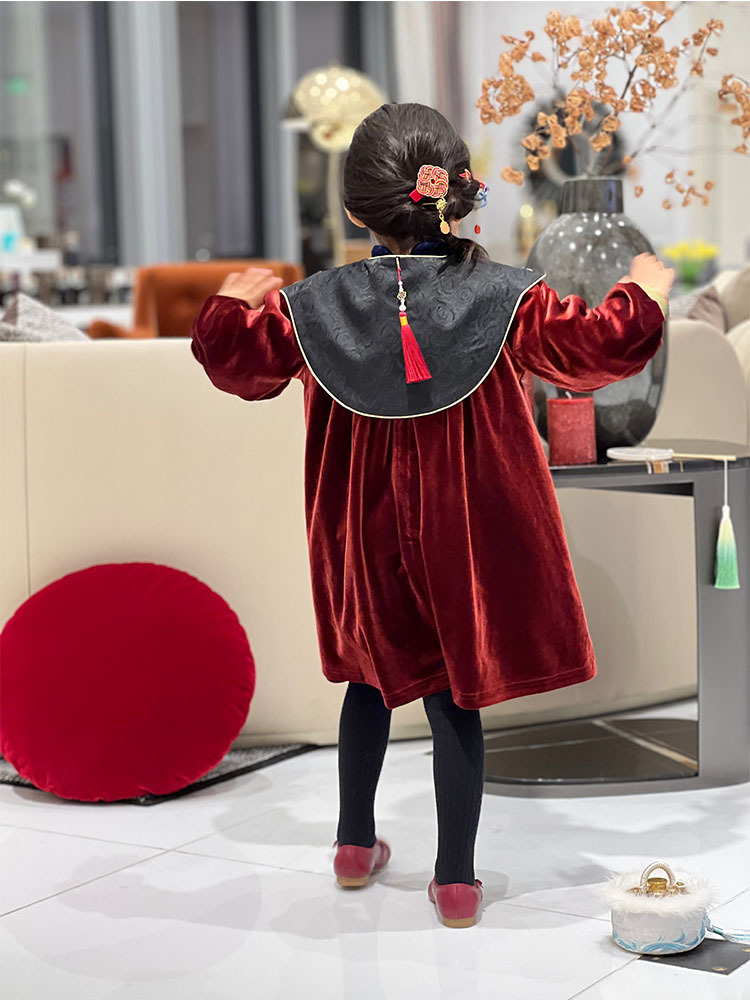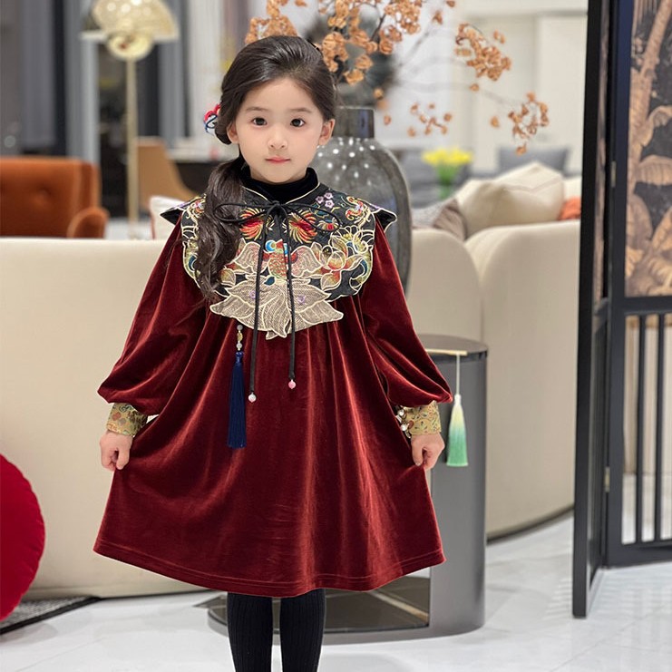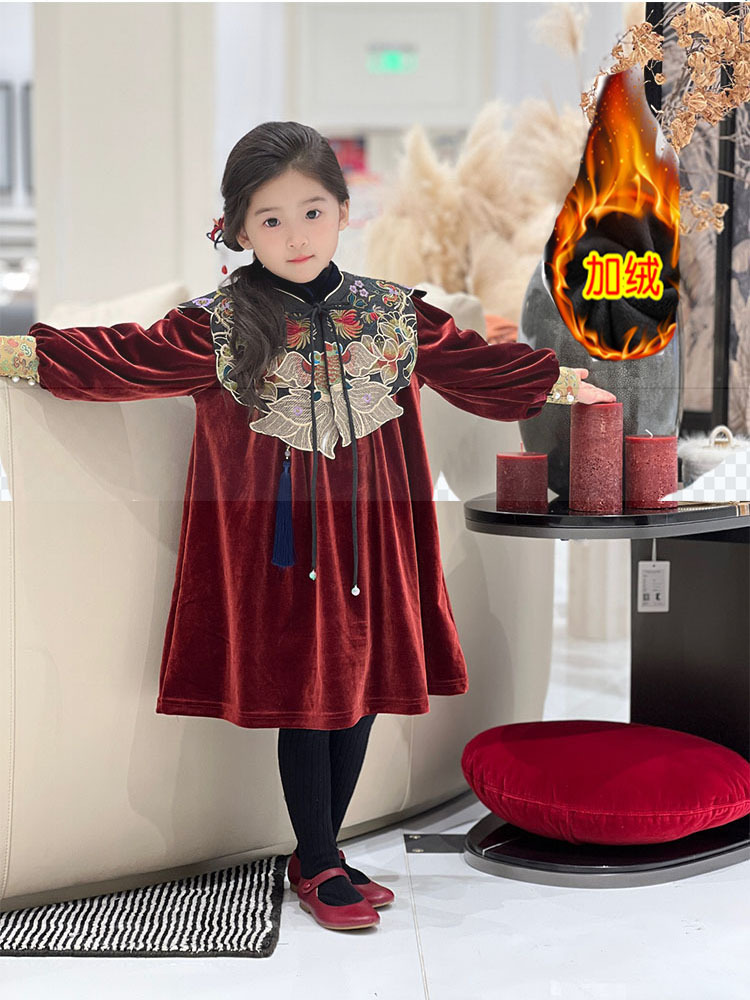 소녀상 기모 원피스 설날 어린이 버건디 벨벳 원피스 새 중국 청삼 중국식 소녀상 신년 원피스스토어 가기