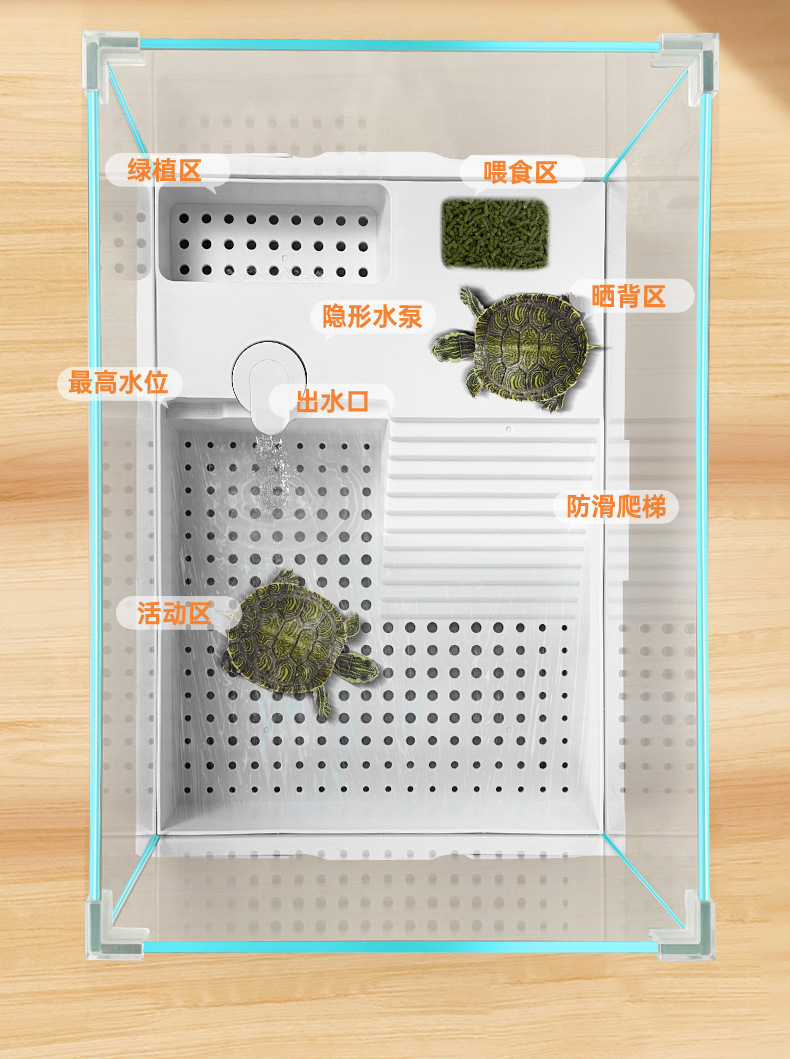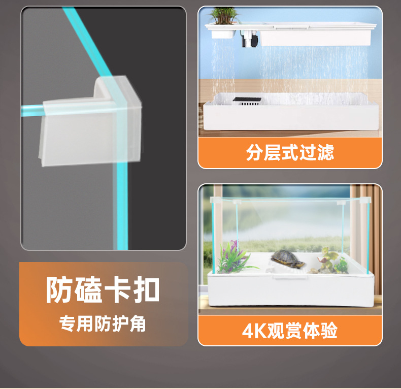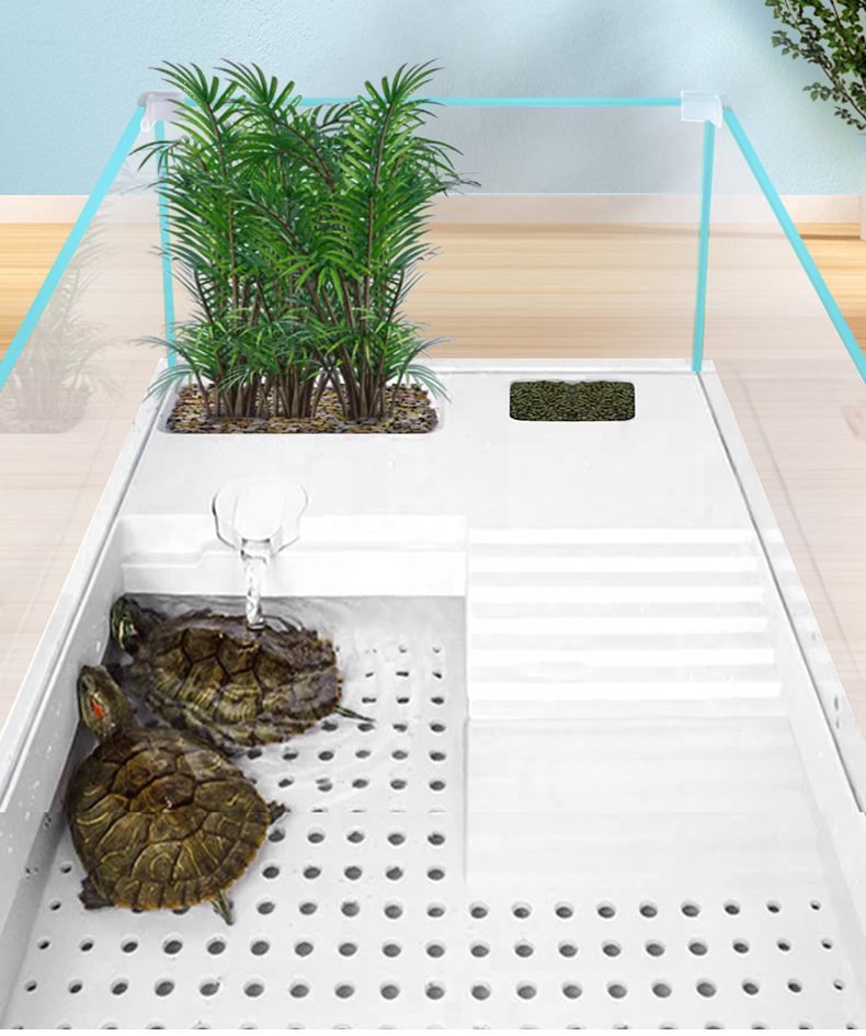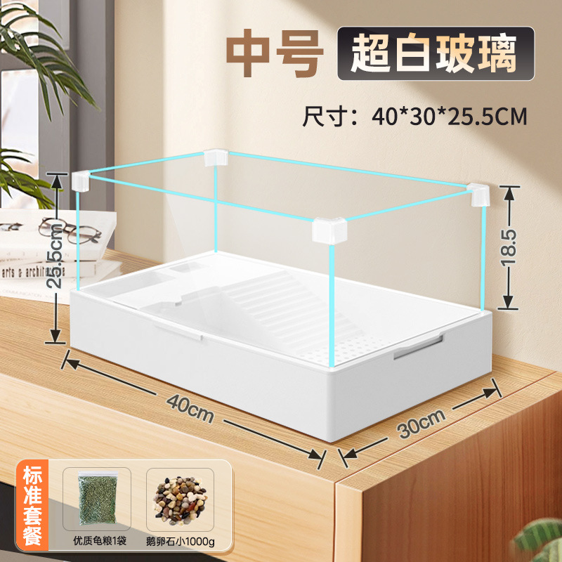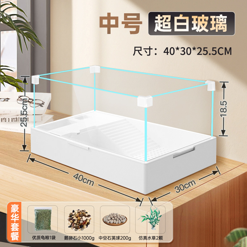 • [분할형 중형 초백색 유리] + 거북이 먹이 + 자갈 + 여과재 + 모의 수생 식물