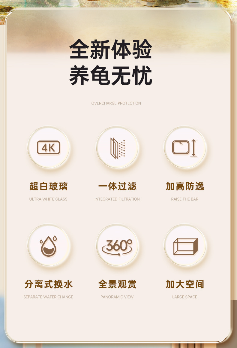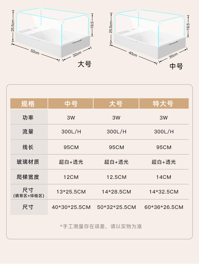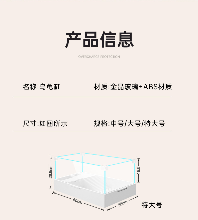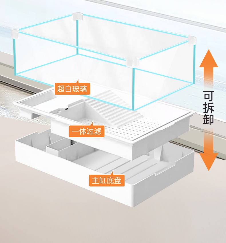• [분할형 중형 초백색 유리] + 거북이 먹이 + 자갈 + 여과재 + 모의 수생 식물