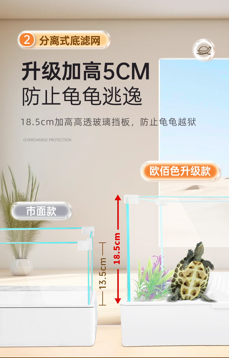 햇빛 등반 테이블이있는 거북이 케이지 풍경 생태 녹색 아크릴 유리 공급 상자 여과 순환 시스템 거실