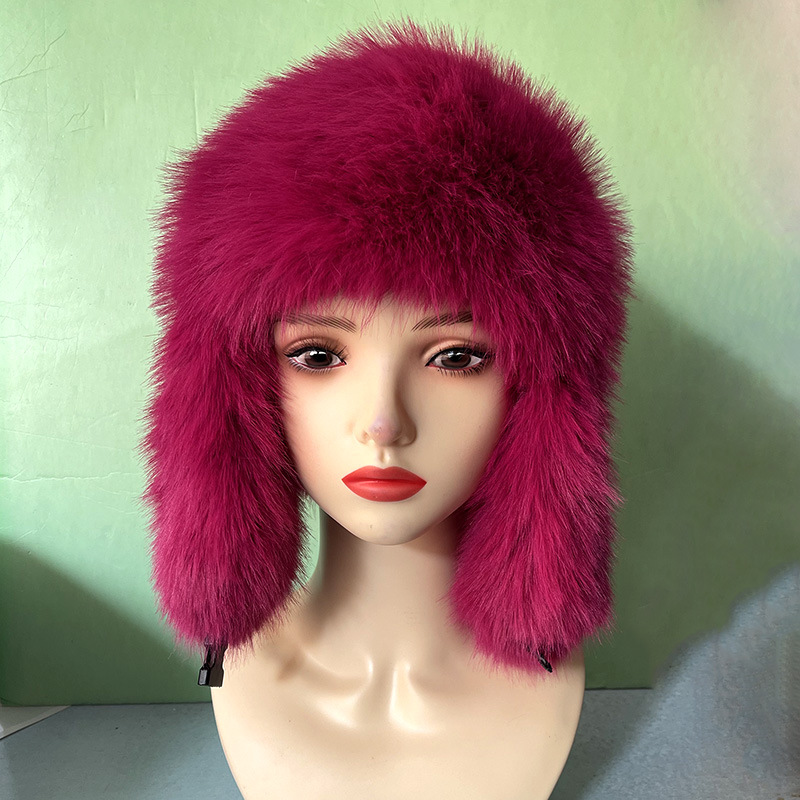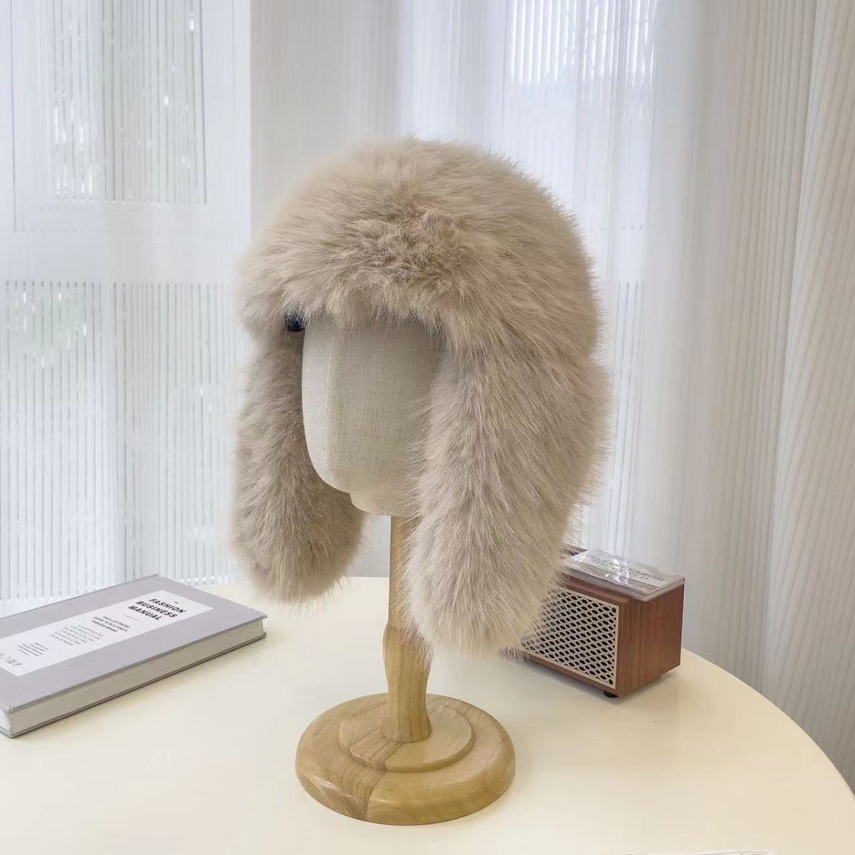 블루 모조 밍크 벨벳 레이 펑 모자 여성의 겨울 봉제 북부 스키 냉장 따뜻한 귀 보호 모자 기모 두꺼운 모자