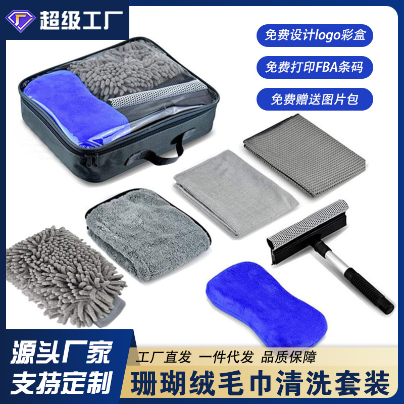 아마존 핫 세일 세차 세트 7 조각 세트 자동차 미용 도구 자동차 와이퍼 장갑 유리 스크레이퍼 세차 타월