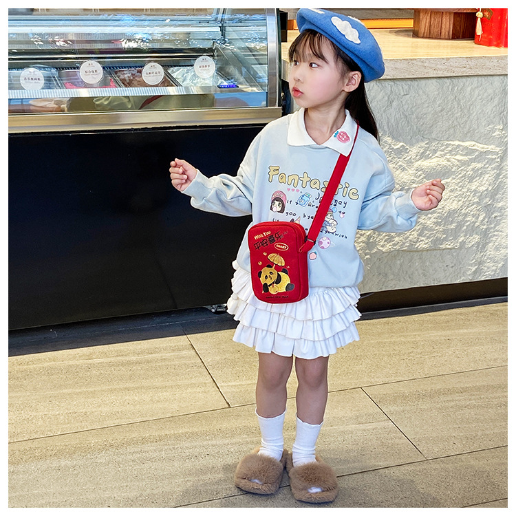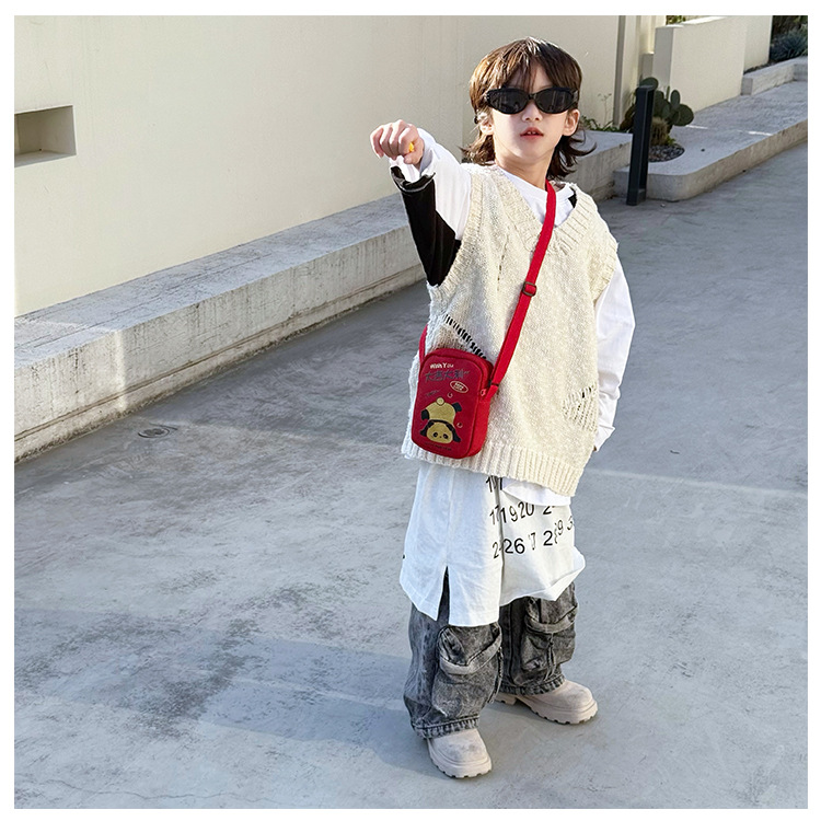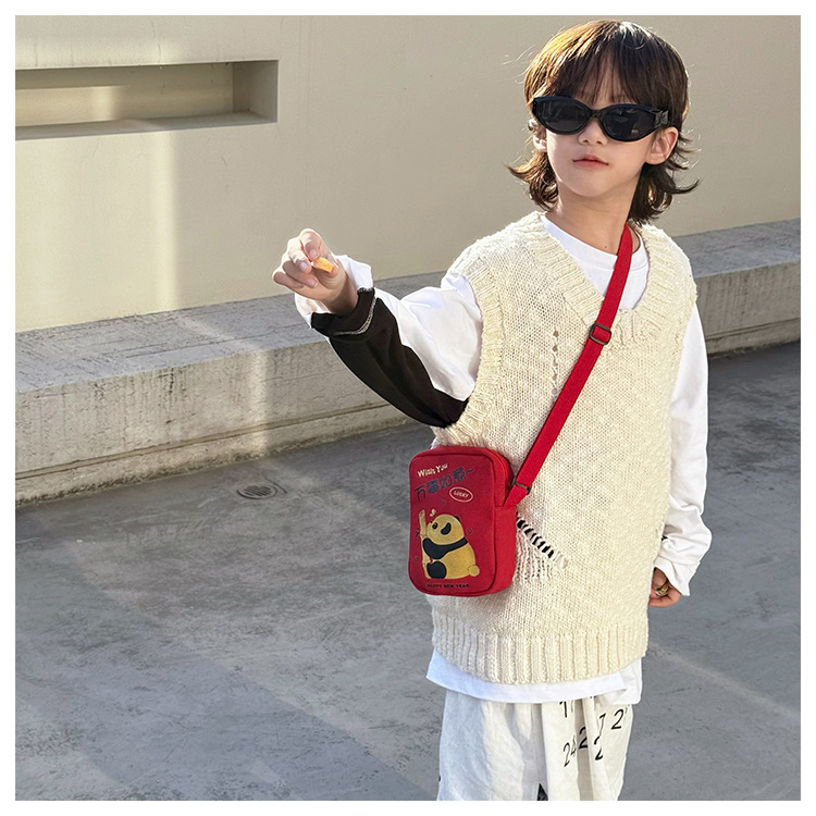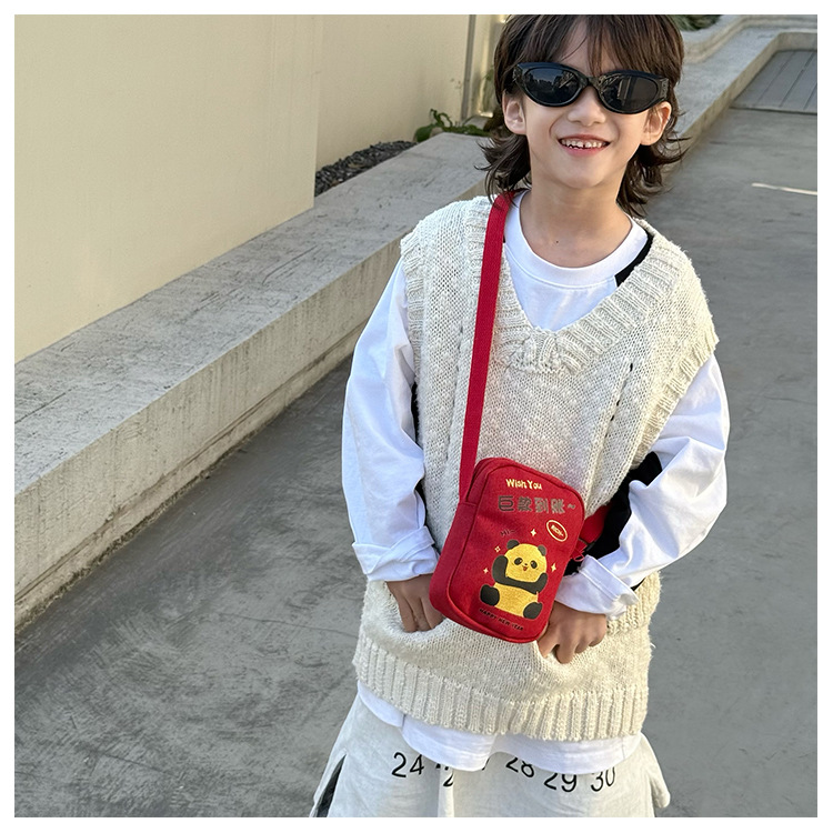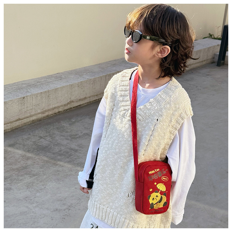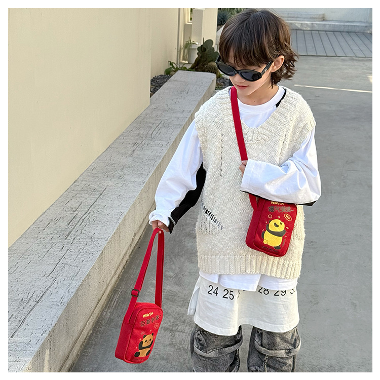 국경을 넘는 새로운 어린이 가방 2024 가을과 겨울 새로운 봄 축제 붉은 유행 크로스 바디 백 소년 소녀를위한 유행스토어 가기