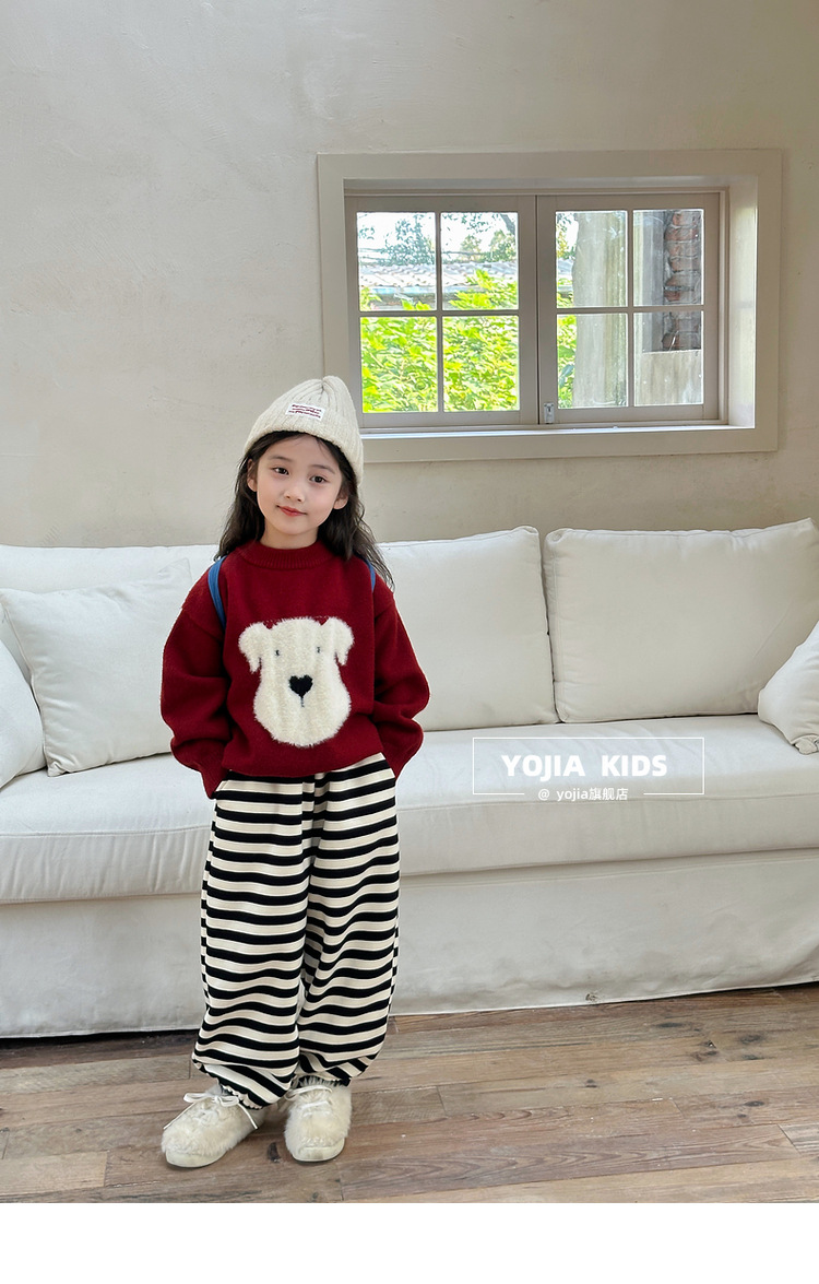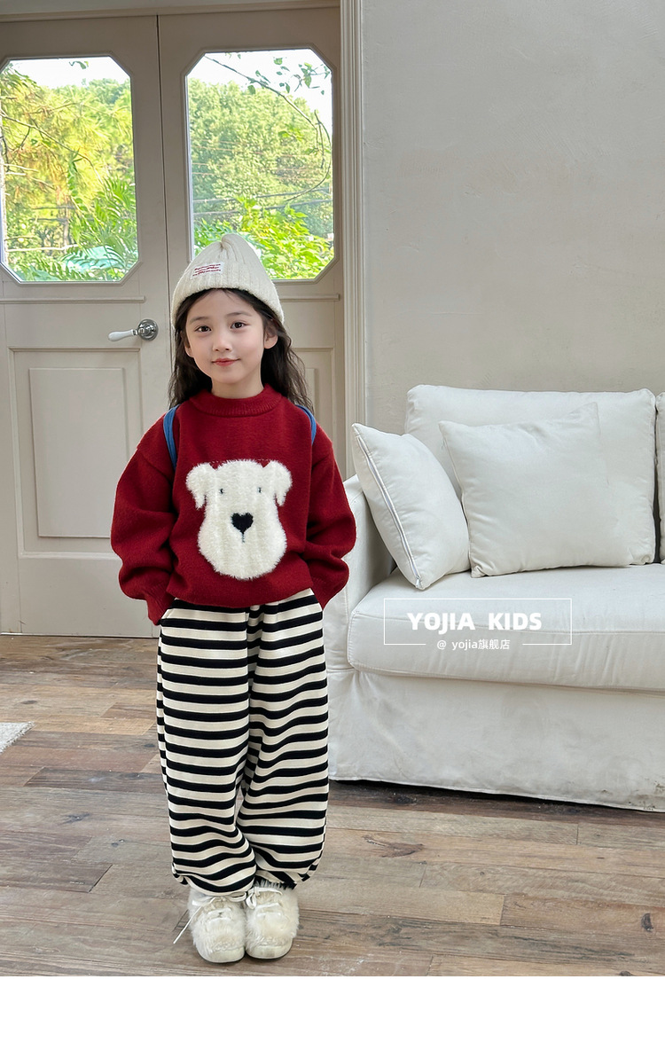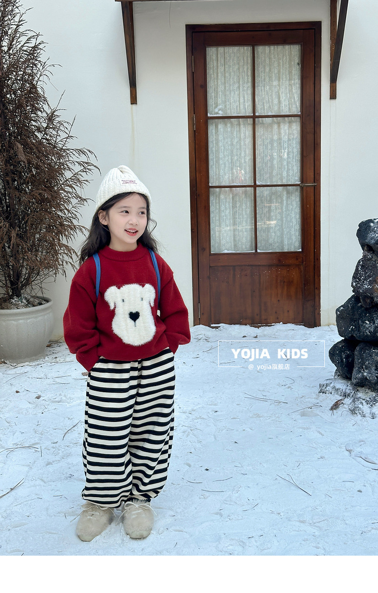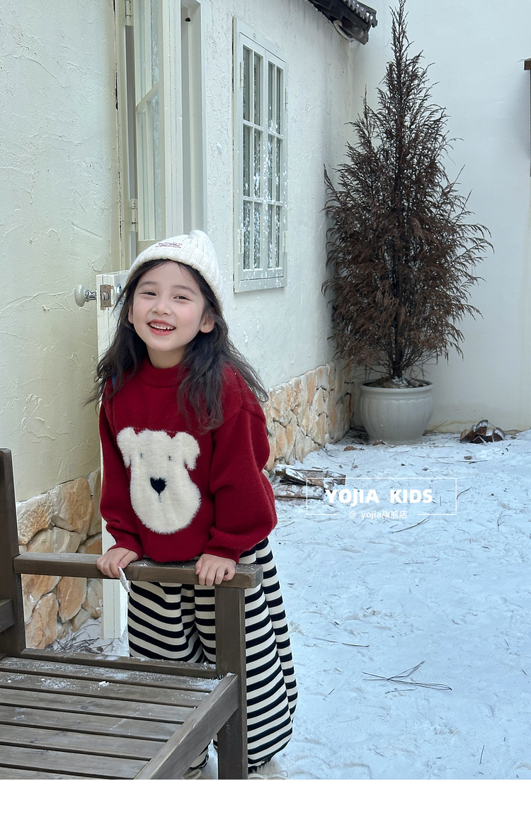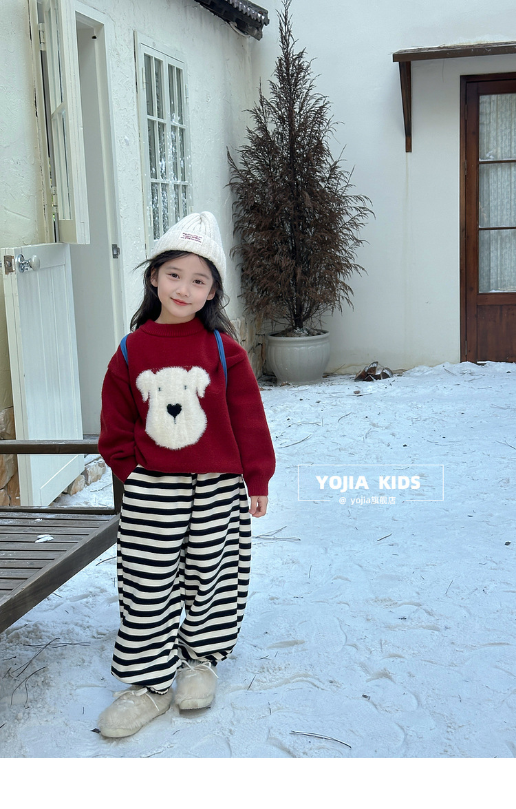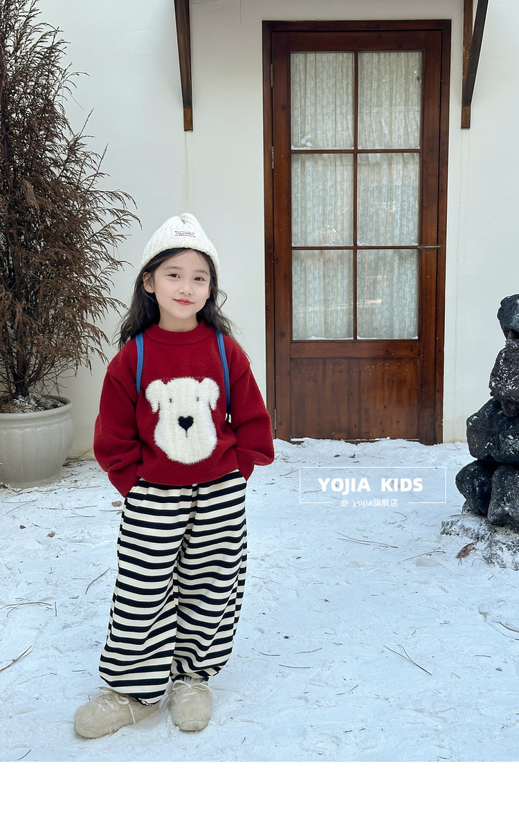 YOJIA 소녀 스웨터 가을과 겨울 2024 새로운 외국 스타일의 새해 소녀 스웨터 두껍게 한 어린이 스웨터