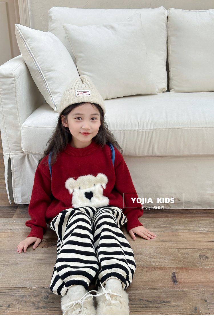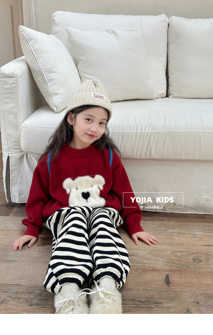 YOJIA 소녀 스웨터 가을과 겨울 2024 새로운 외국 스타일의 새해 소녀 스웨터 두껍게 한 어린이 스웨터스토어 가기