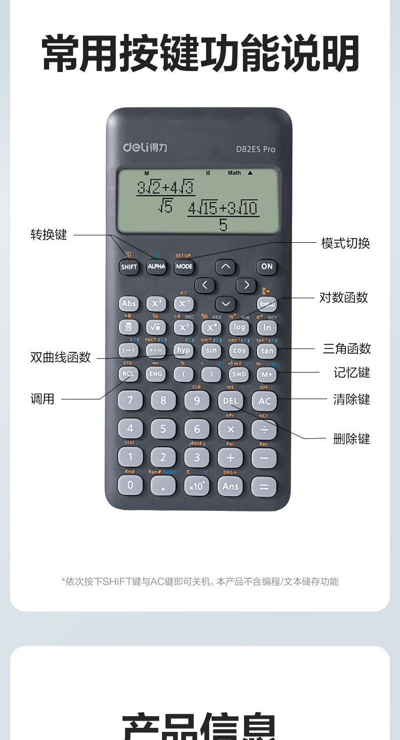 델리 과학 계산기 다기능 기능 컴퓨팅 기계 대학생 중학교 특별 저장 학생 시험 없음스토어 가기