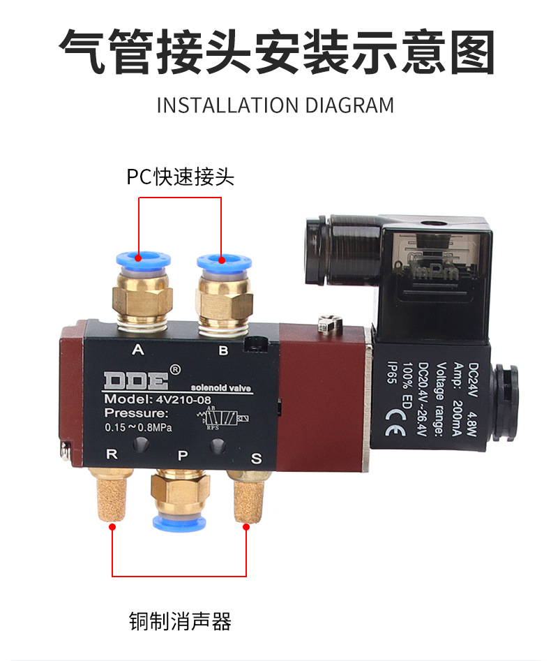 • 10mm 커넥터 머플러가 있는 4V210-08DC24V