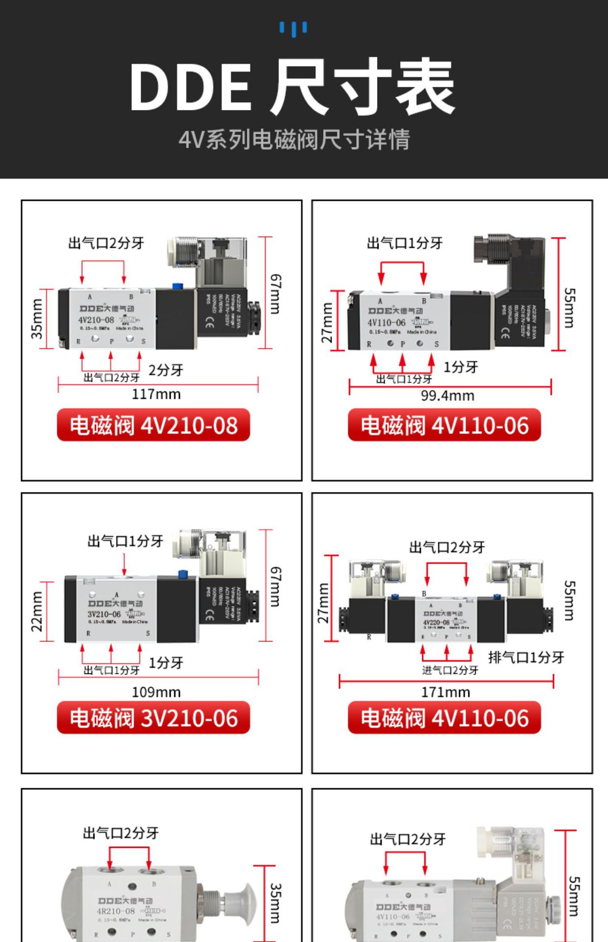 • 4V210 미세 4위치 밸브 그룹(기관 크기 및 전압 참고)