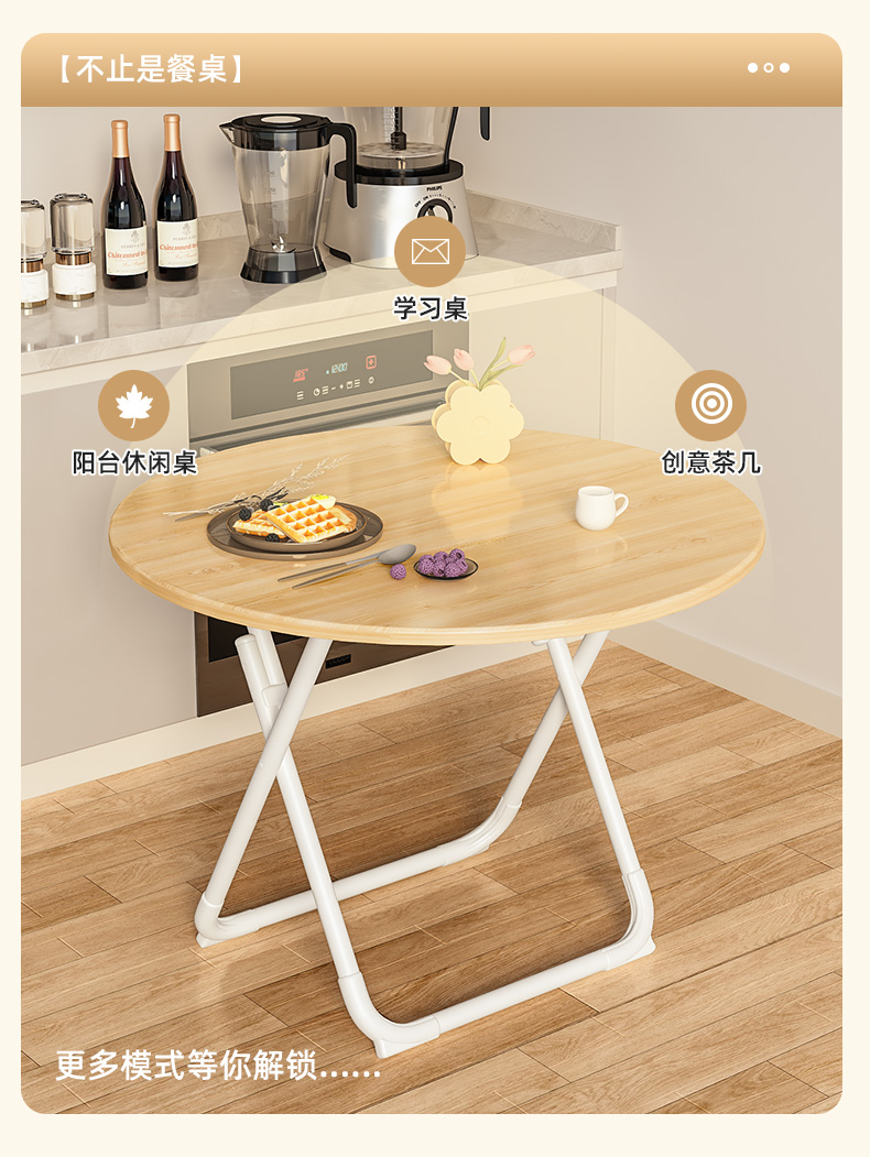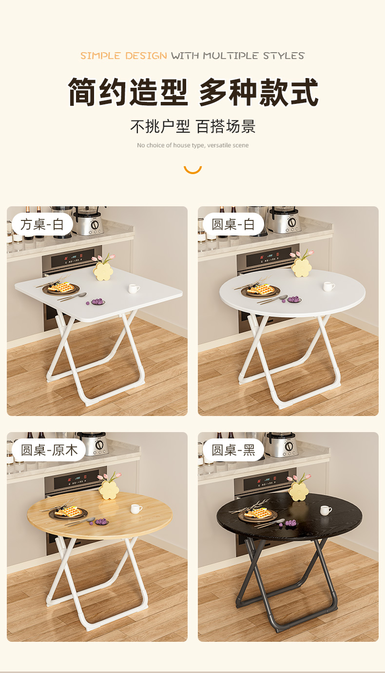 W * 테이블 접이식 테이블 식탁 가정용 작은 아파트 간단한 라운드 테이블 렌탈 하우스 야외 휴대용 스톨 다이닝 파티